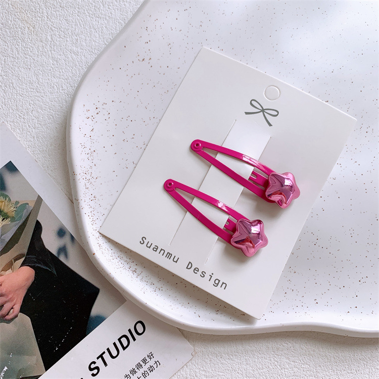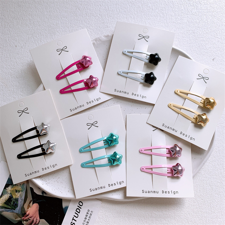 메탈릭 다채로운 오각형 스타 어린이 헤어핀 소녀의 기본 부러진 헤어 뱅이 클립 프론트 헤드 클립 헤어핀 헤드웨어