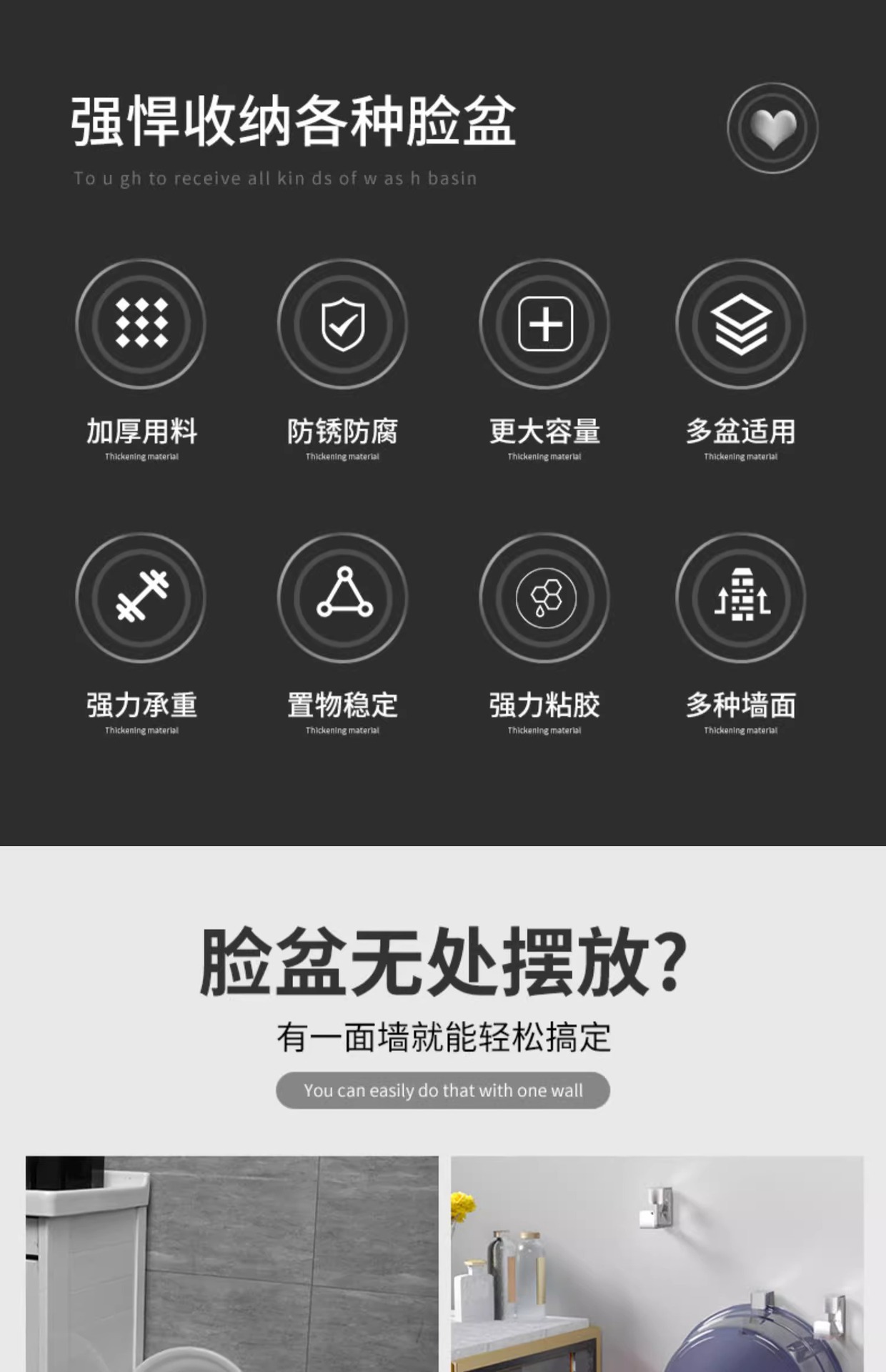 • 거울 세면기 랙 * 2 [펀칭 및 분지 손상 없음] 도구 배달