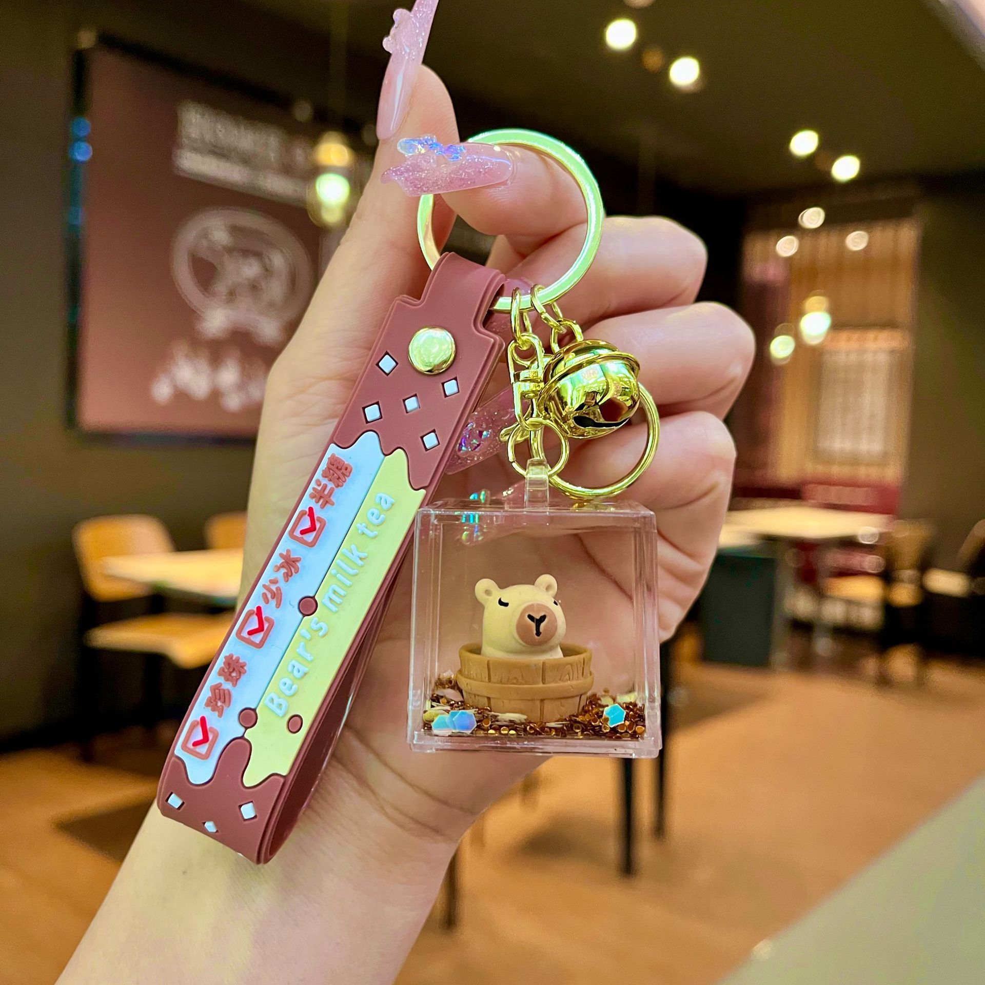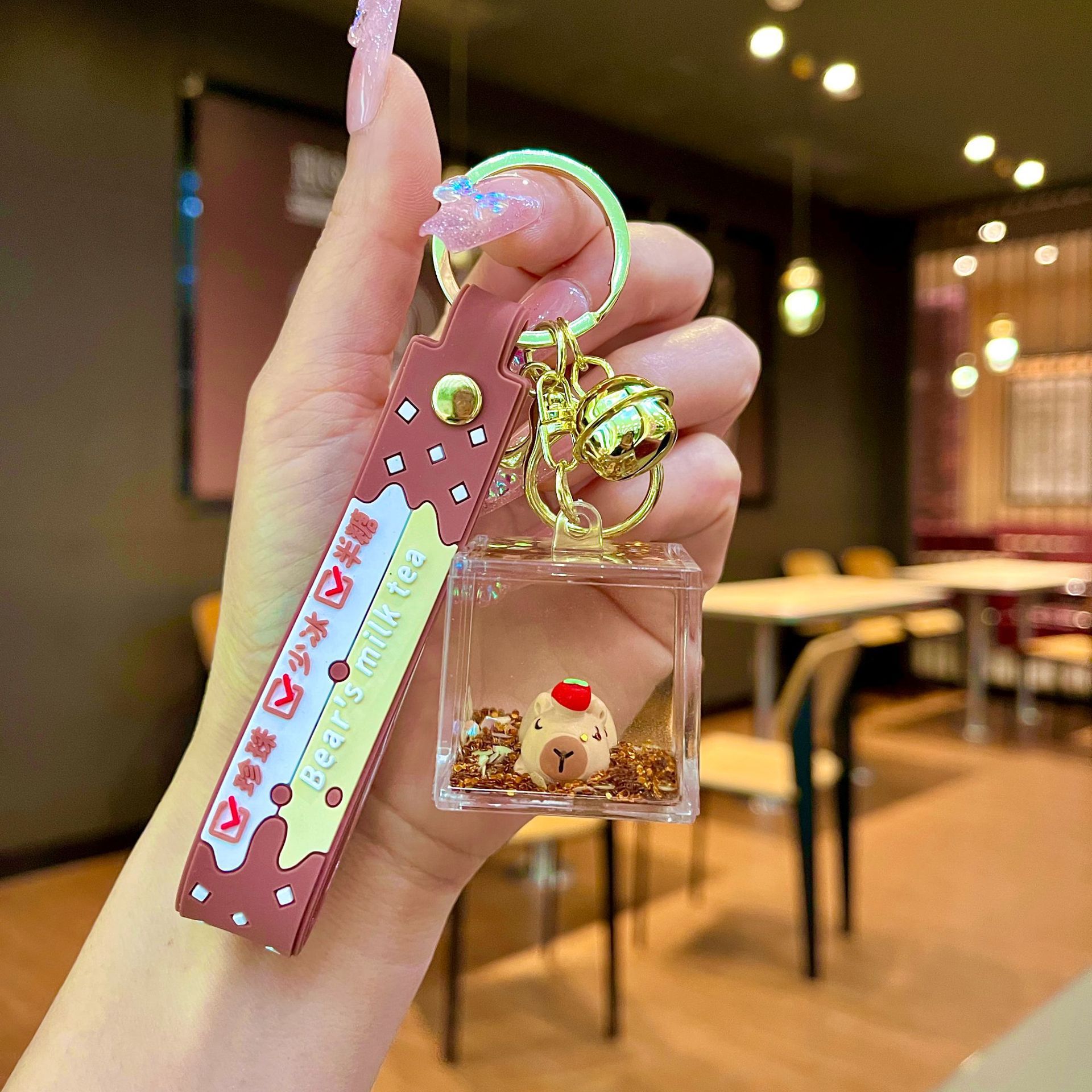 만화 빛나는 Capibala 키 체인 귀여운 Capybara 인형 커플 가방 액세서리 펜던트 작은 선물 도매