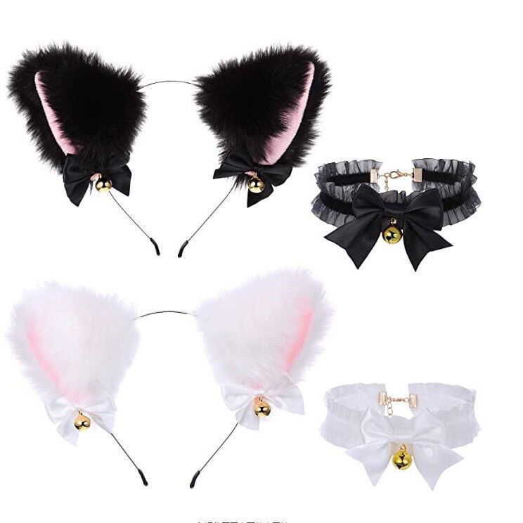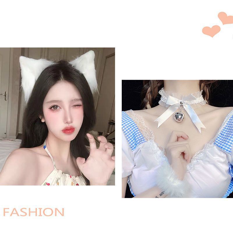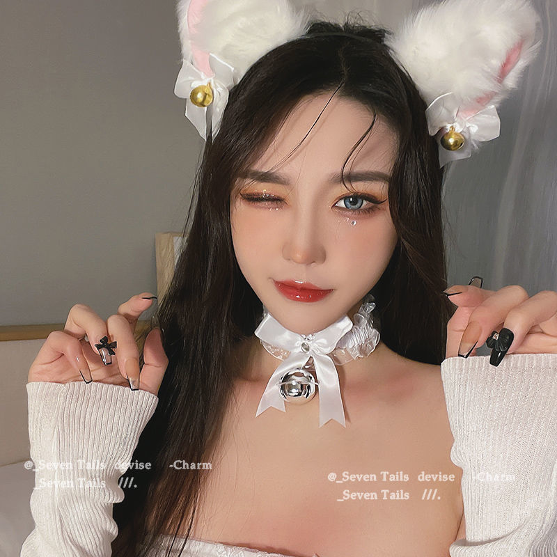 • [세트] 화이트 벨 고양이귀 머리띠 + 화이트 라지 벨 칼라