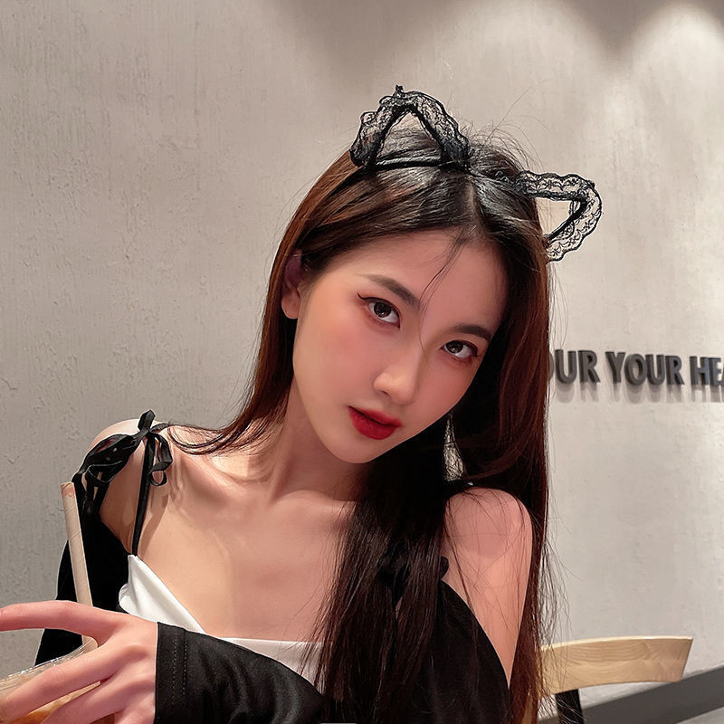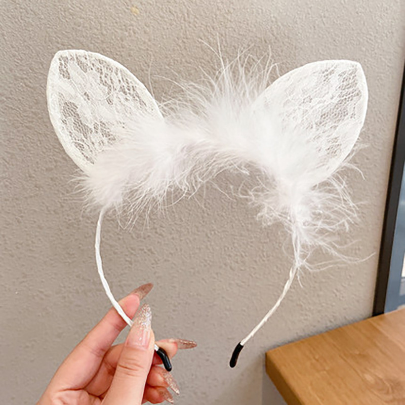 고양이 귀 머리핀 시뮬레이션 동물 귀 여우 귀 고양이 머리 장식 귀여운 플러시 머리띠 헤어 액세서리 놀이 머리띠 레이스