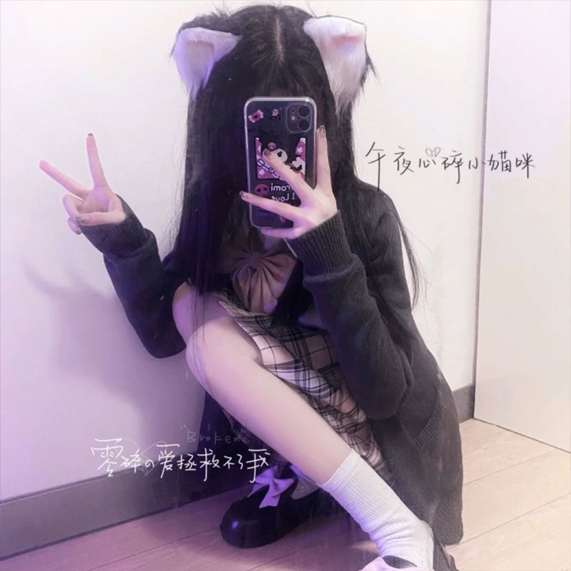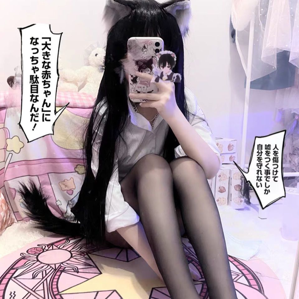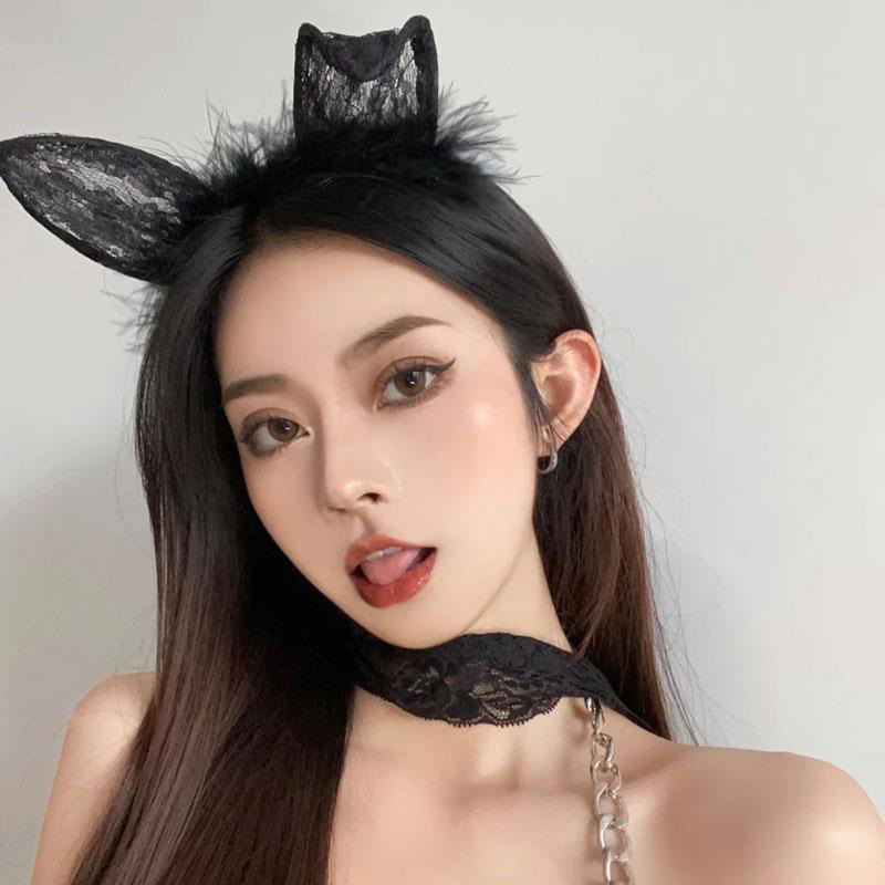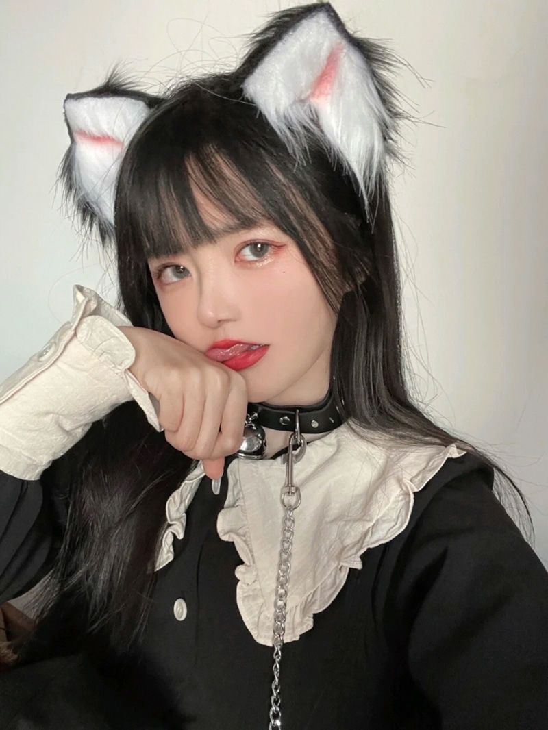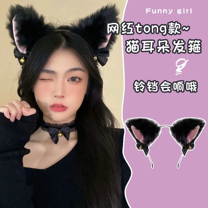 • 우아한 검은색 봉제 고양이 귀 + 큰 검은색 종