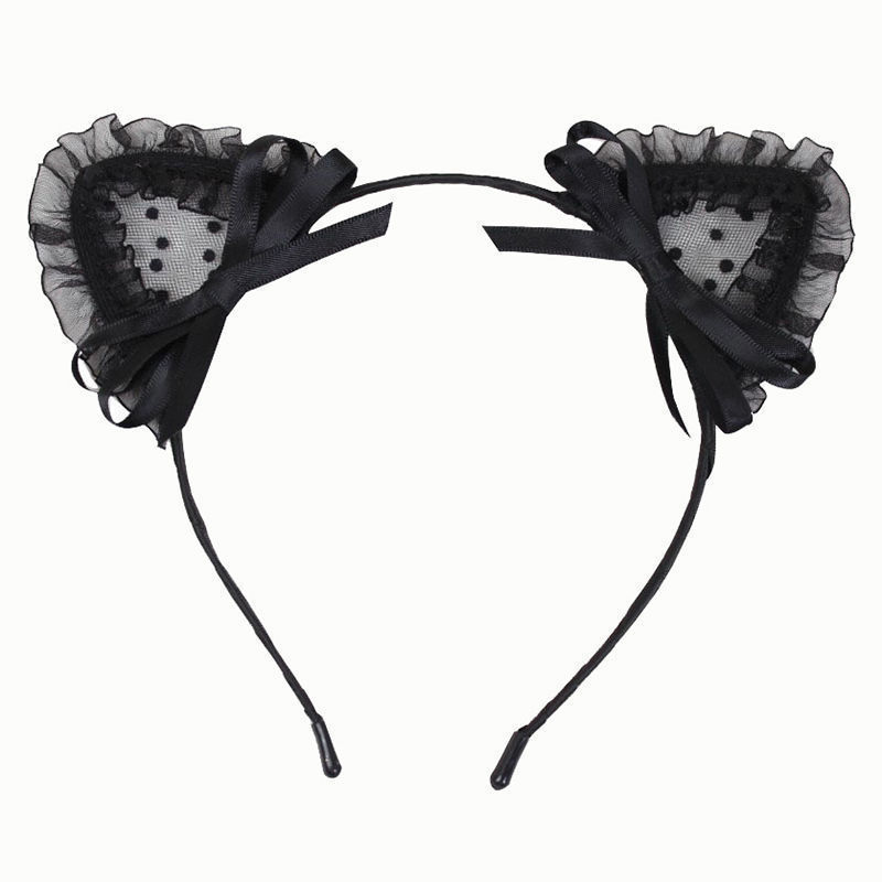 • 우아한 검은색 봉제 고양이 귀 머리핀