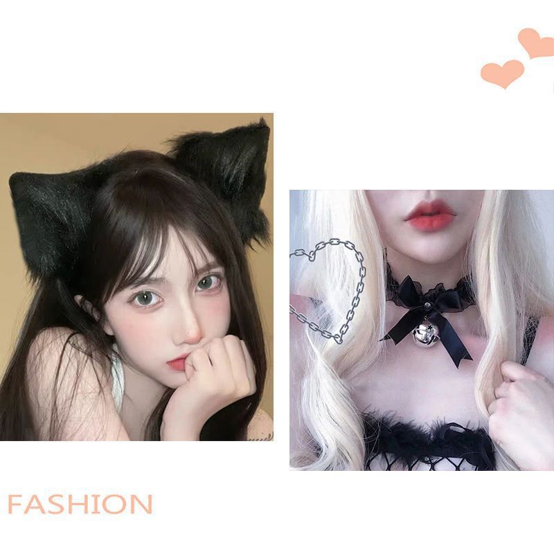 • [세트] 블랙 벨 고양이귀 머리띠 + 블랙 빅 벨 칼라