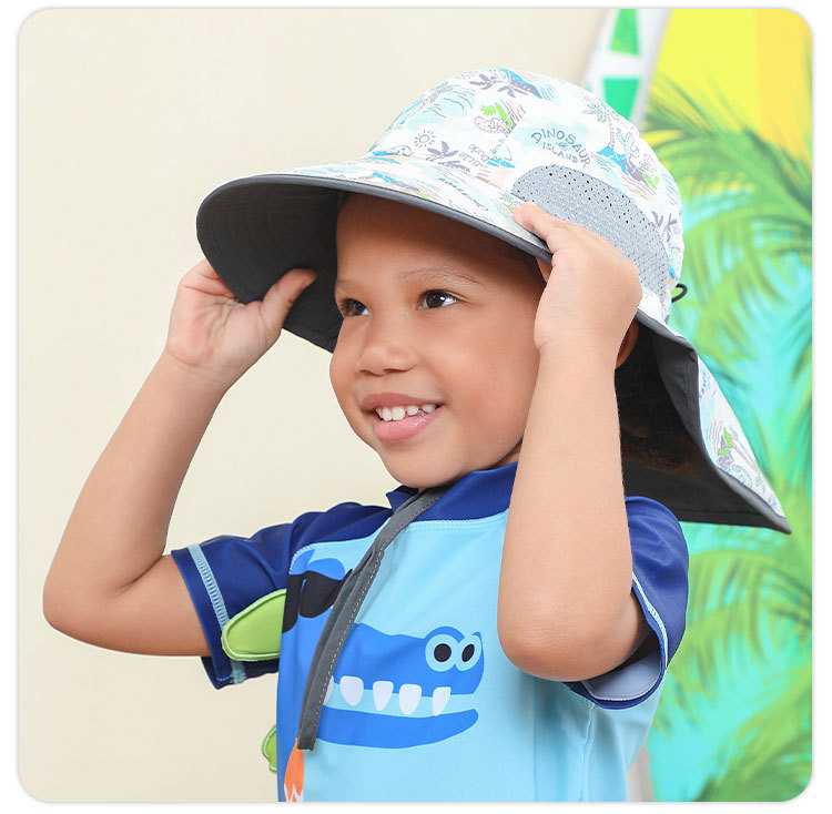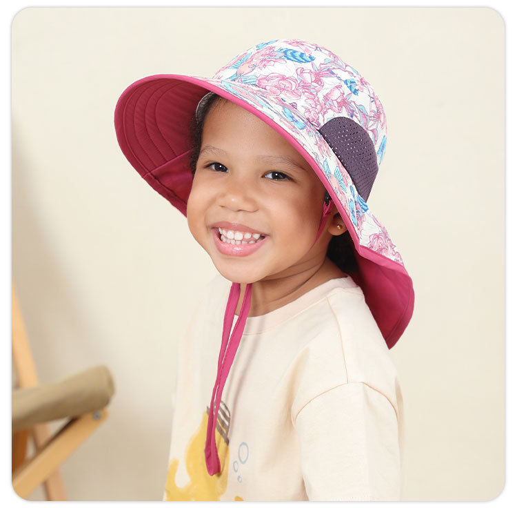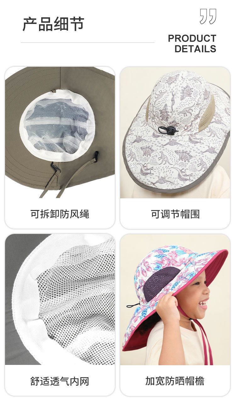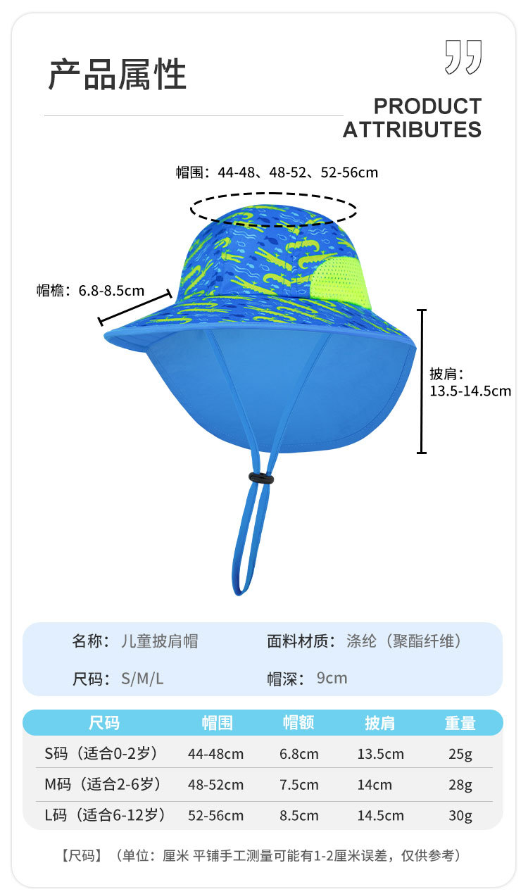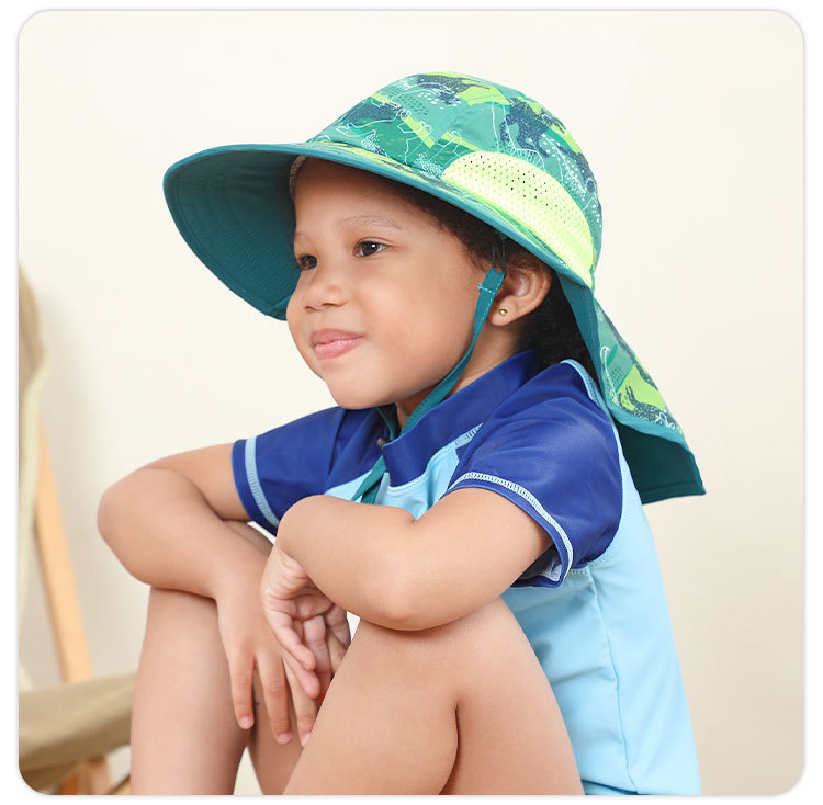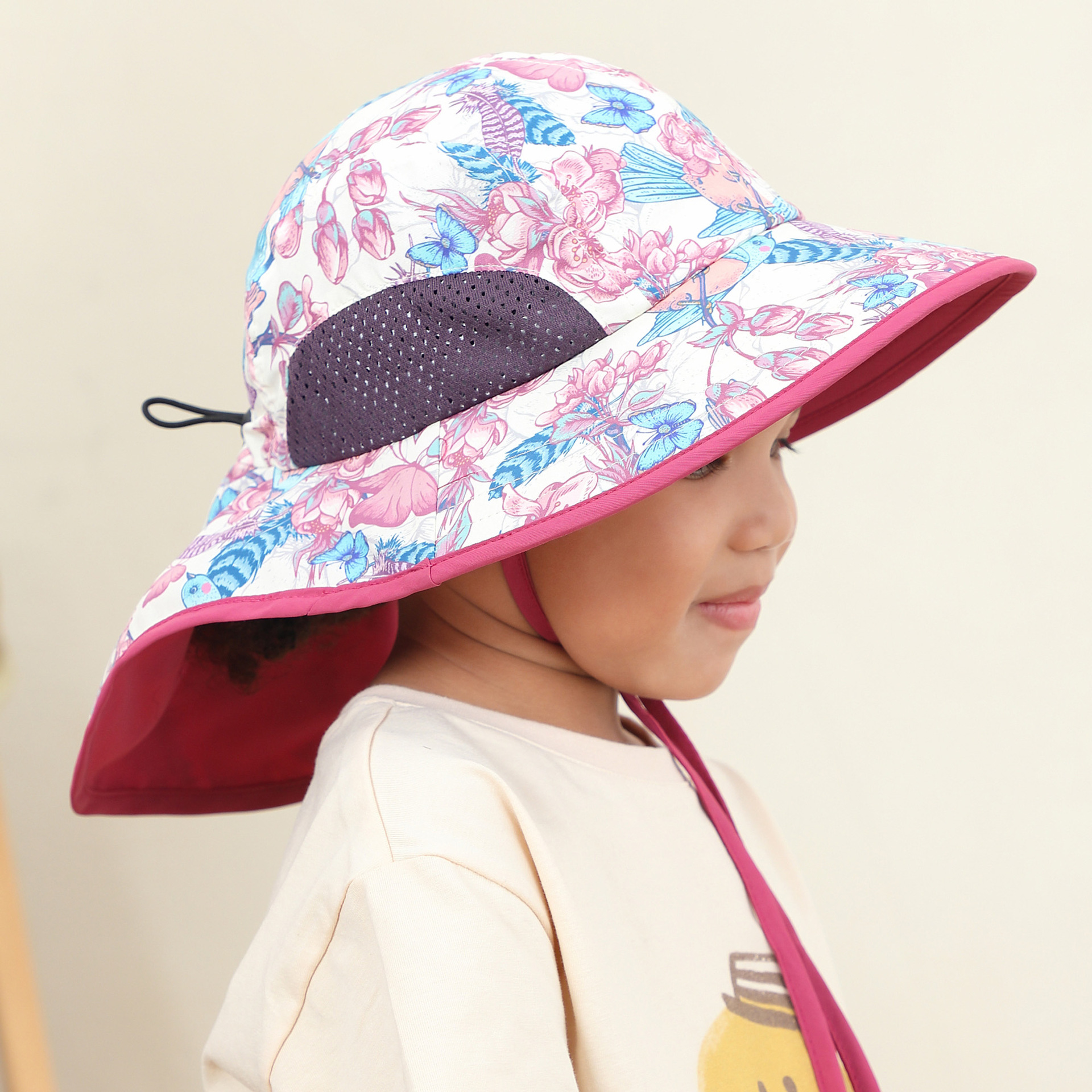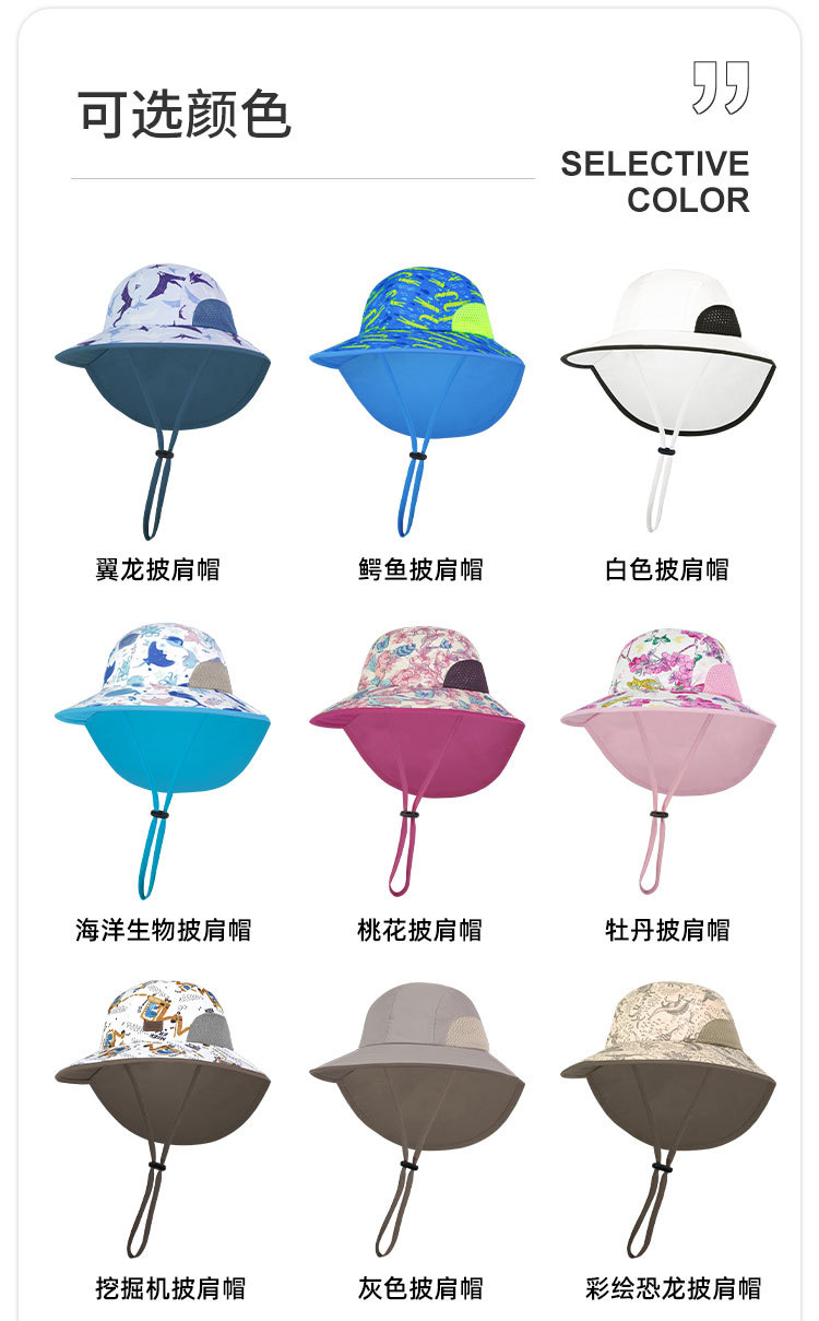 薄款沙滩花色小月龄宝宝太阳帽 夏天遮脖子7-12岁遮阳儿童防晒帽
