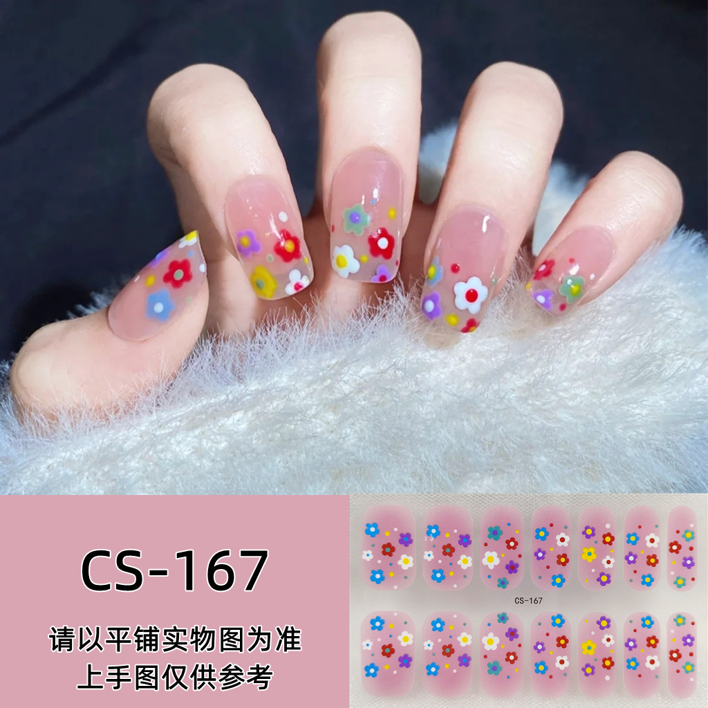 비 베이킹 젤 작은 신선한 방수 내구성 3D 네일 스티커 패치 여성의 탈착식 웨어러블 네일 스티커 전체 스티커