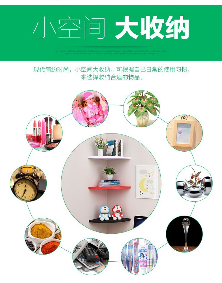 코너 선반 침실 장식 비 천공 파티션 벽 삼각형 책장 벽 팬 모양의 주방 벽 교수형 신제품스토어 가기