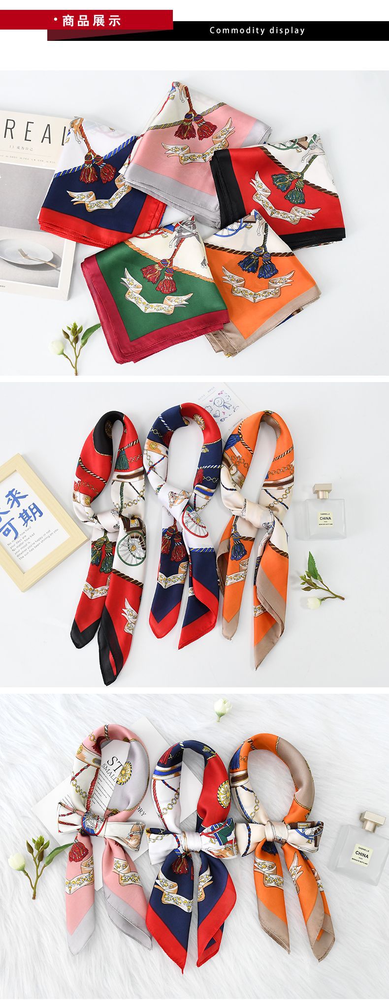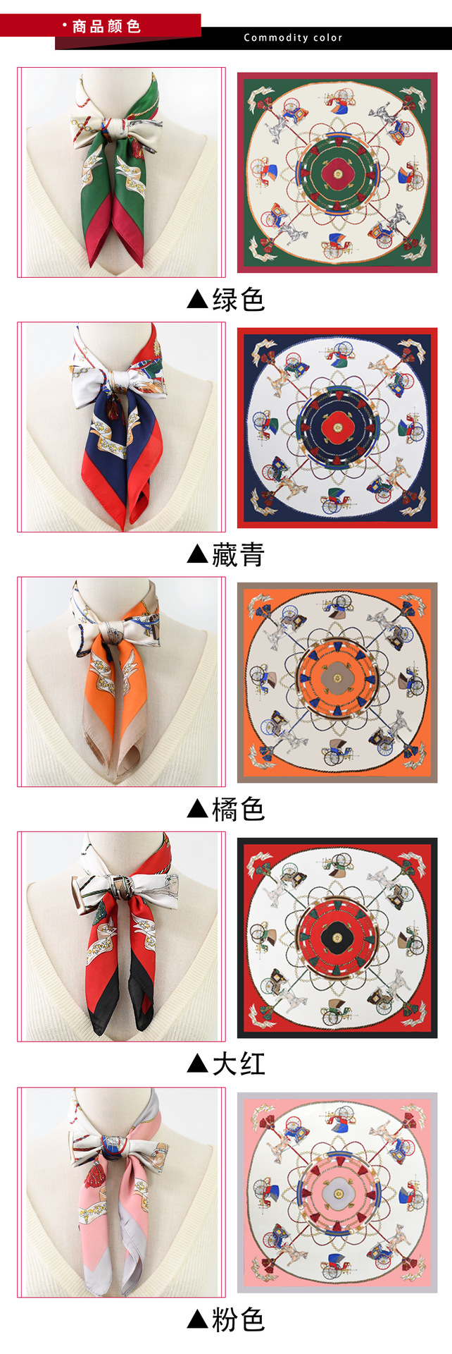 새로운 패션 조커 하이 센스 70 모조 실크 스카프 도매 국경 복고풍 마차 하이 센스 스퀘어 스카프