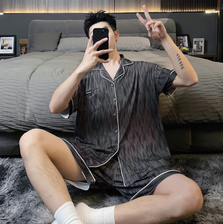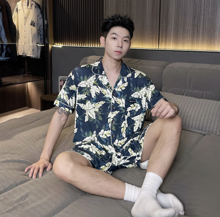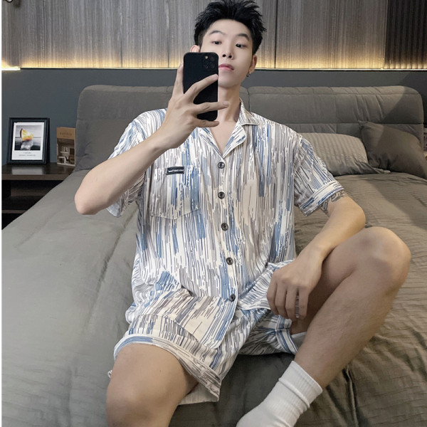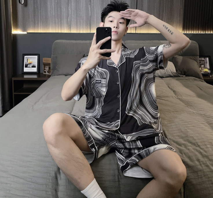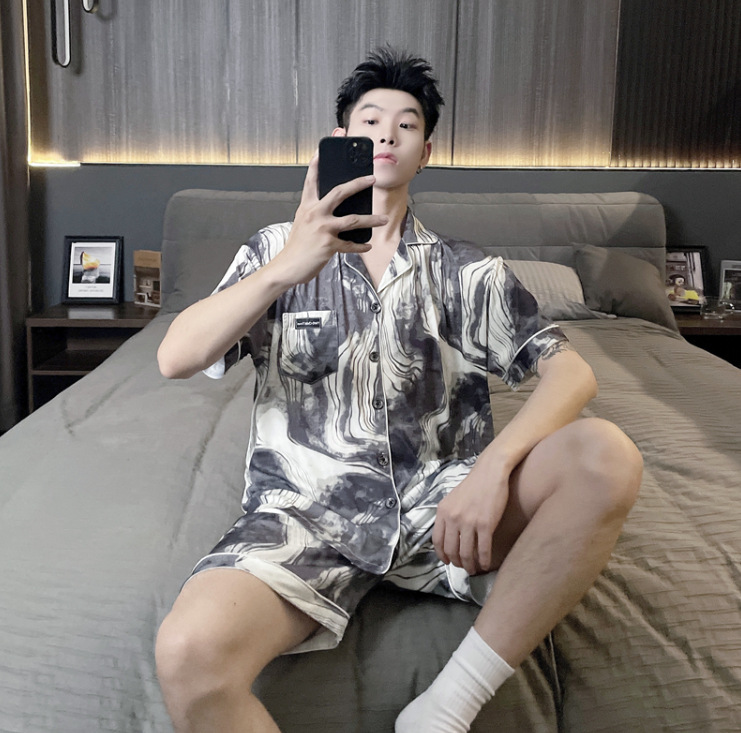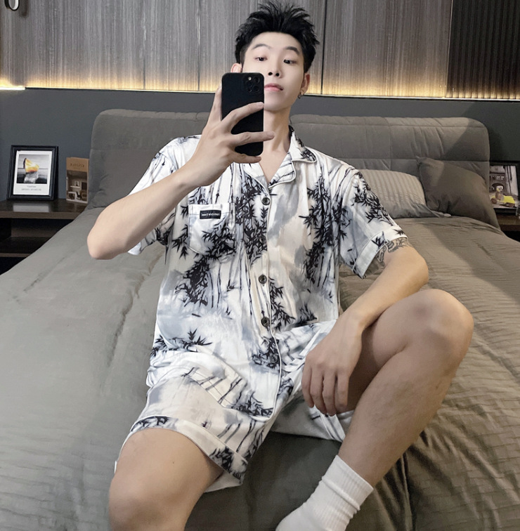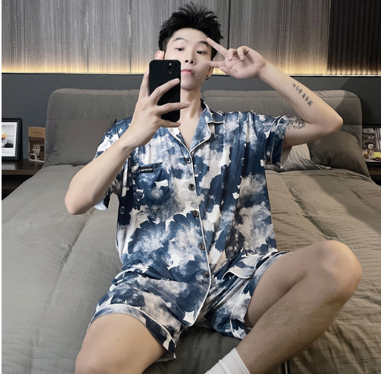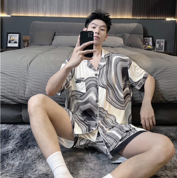 아이스 실크 잠옷 남자 여름 하이 엔드 반소매 지방 플러스 사이즈 100.00 kg-150.00 kg 유행 브랜드 만화 홈 의류 세트스토어 가기