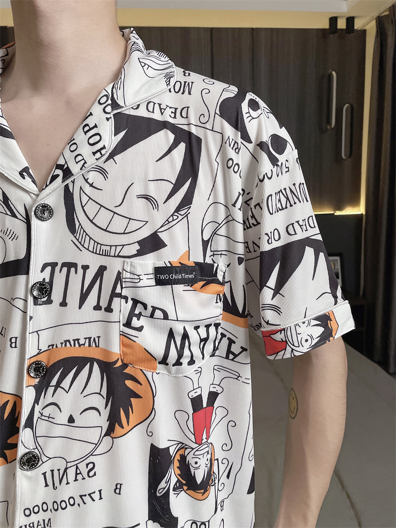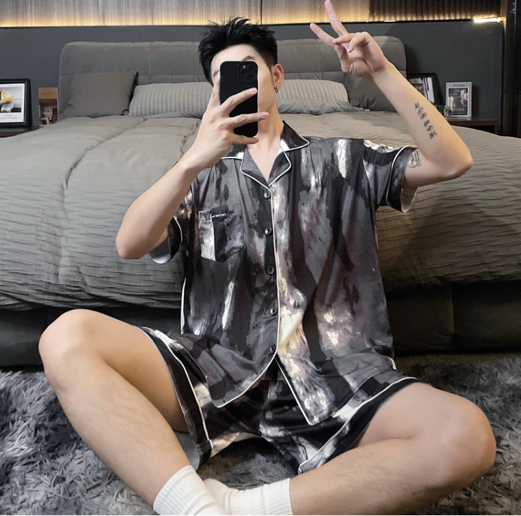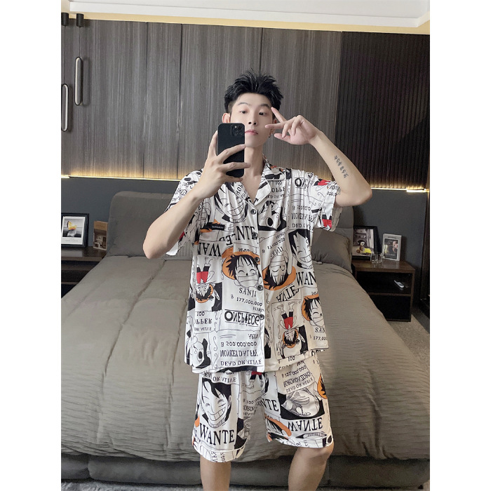 아이스 실크 잠옷 남자 여름 하이 엔드 반소매 지방 플러스 사이즈 100.00 kg-150.00 kg 유행 브랜드 만화 홈 의류 세트