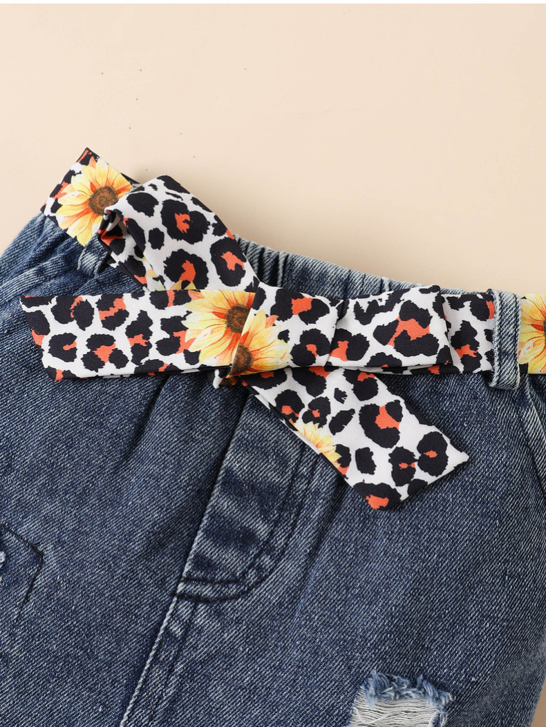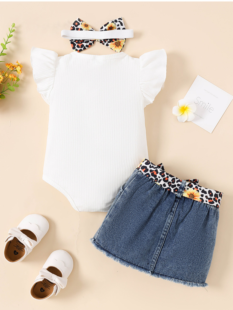 아기 캐주얼 여름 국경 상단 인쇄 영어 꽃 짧은 치마 데님 여자 민소매 원피스