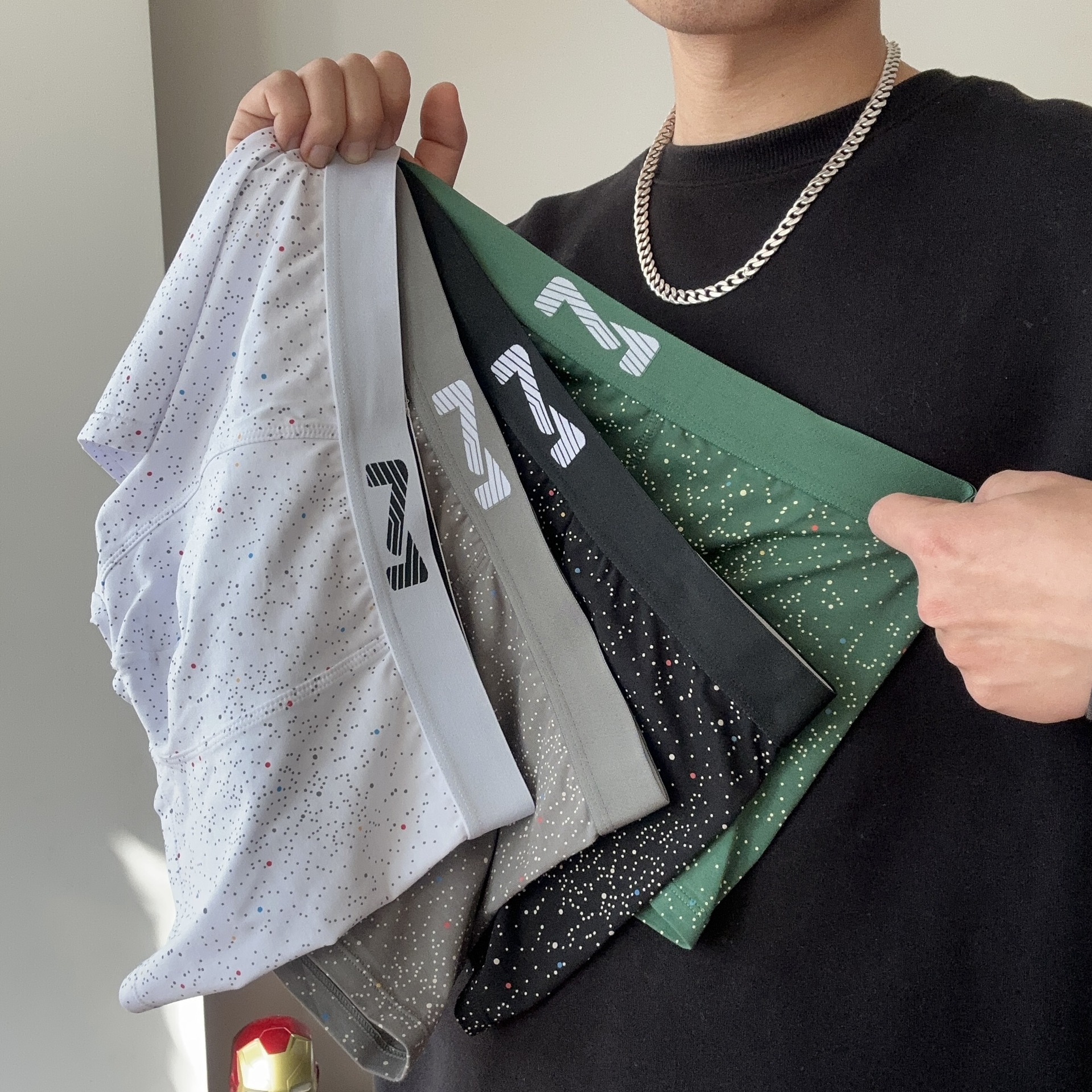 Gypsophila 남성 속옷 순수 코튼 복서 팬티 맞춤형 스포츠 트렌디 폴카 도트 인쇄 통기성 중간 허리 복서 팬티 편안한스토어 가기