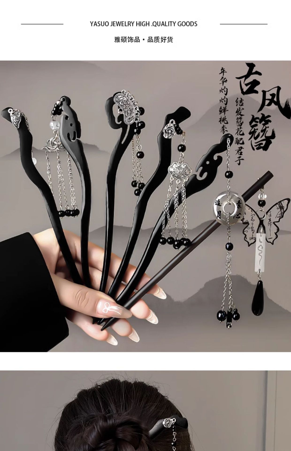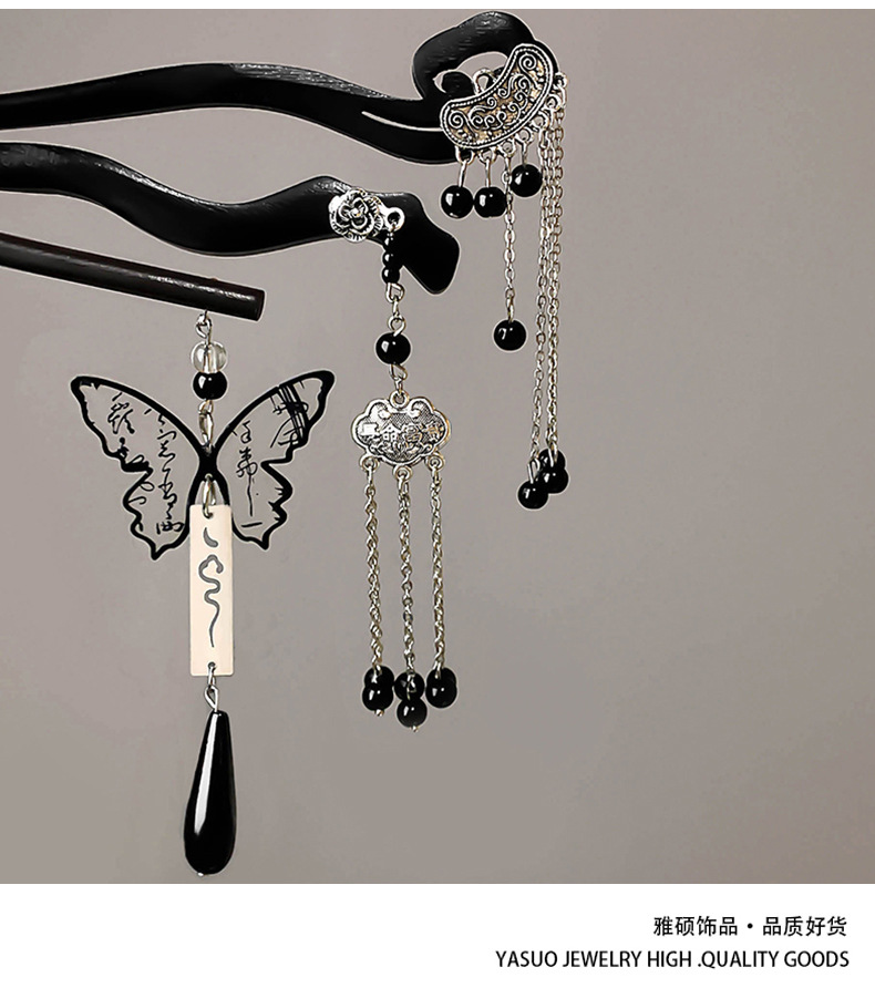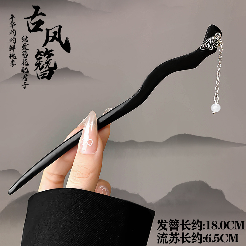 새로운 골동품 나무 머리핀 하이 엔드 감각 나비 술 헤어 핀 한푸 헤어 디스크 헤어 핀 새로운 중국 스타일 올 매치 헤어 액세서리