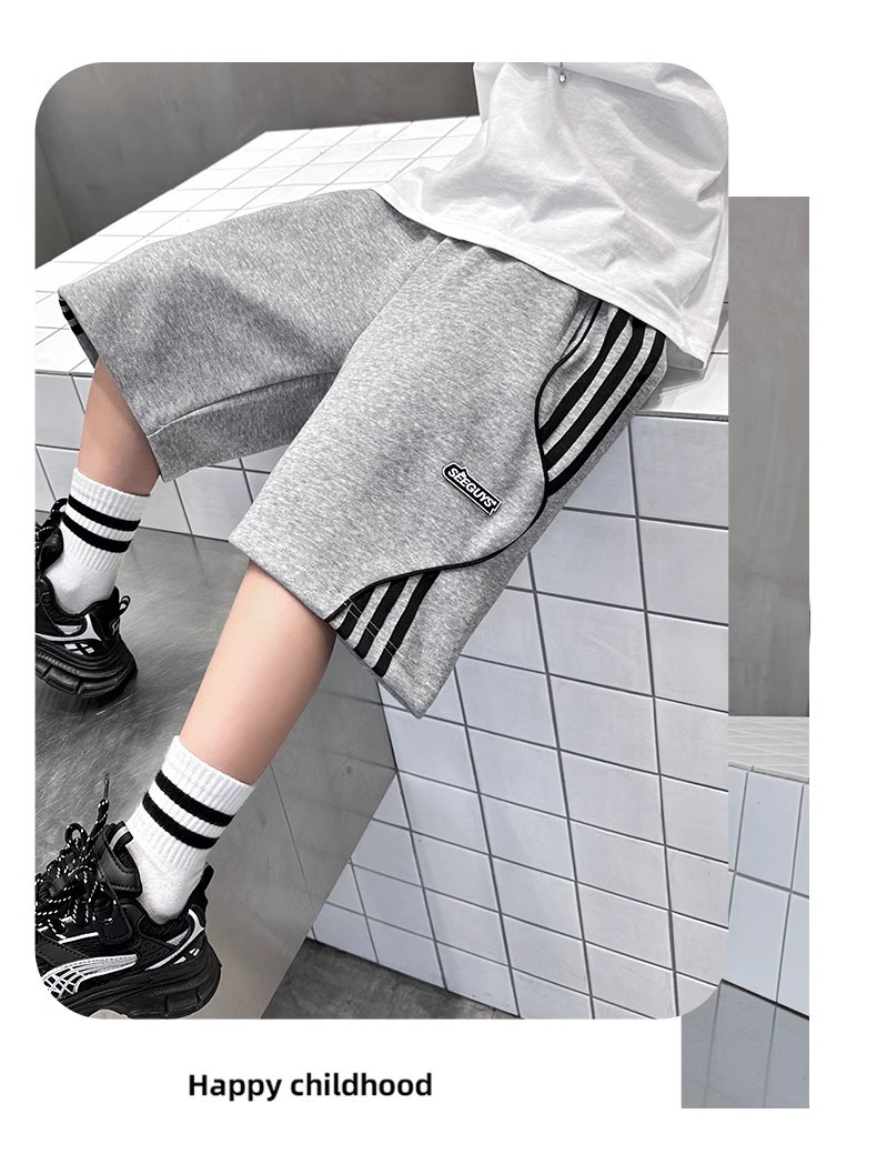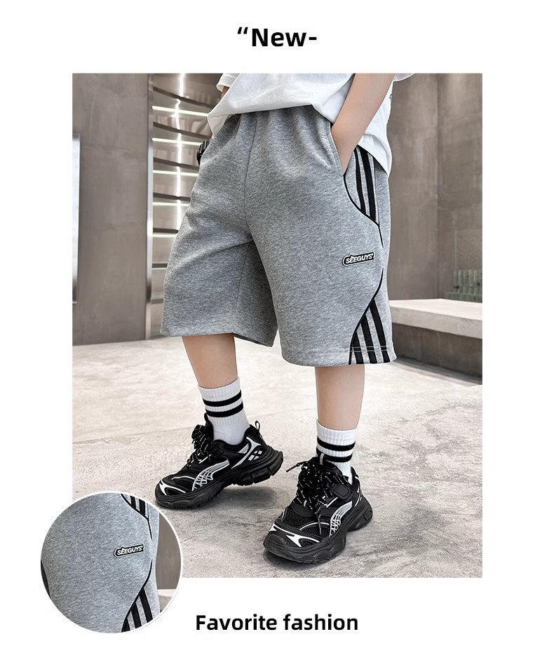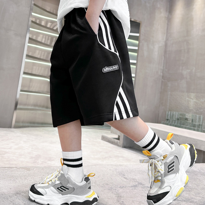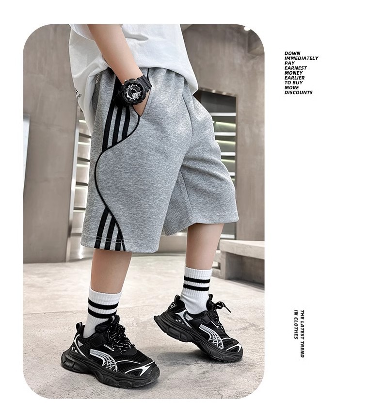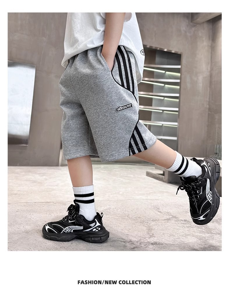 어린이 바지 소년 바지 여름 스포츠 반바지 2024 새로운 어린이 여름 중장 바지 대형 어린이 및 소년 절반 길이 바지스토어 가기