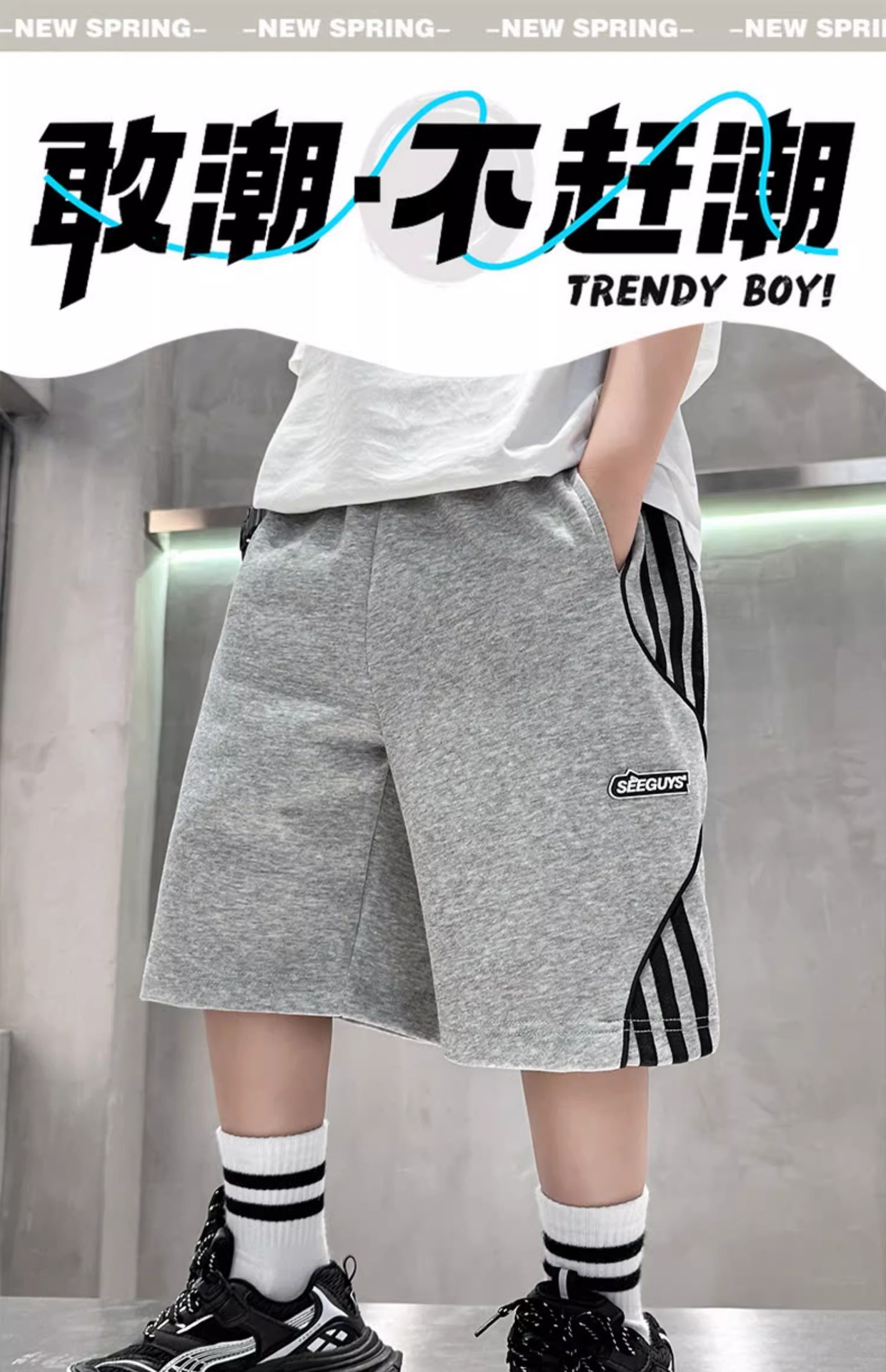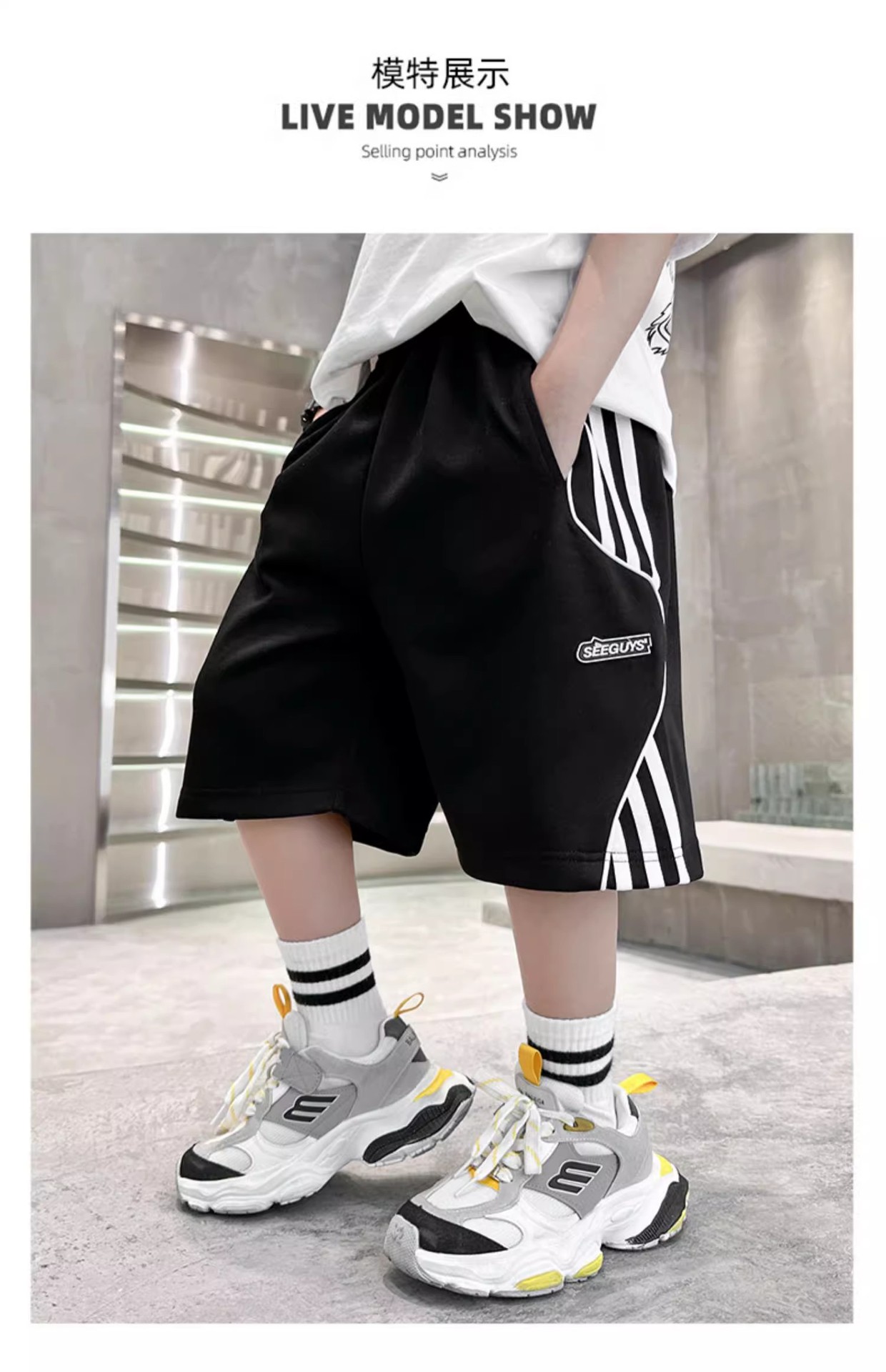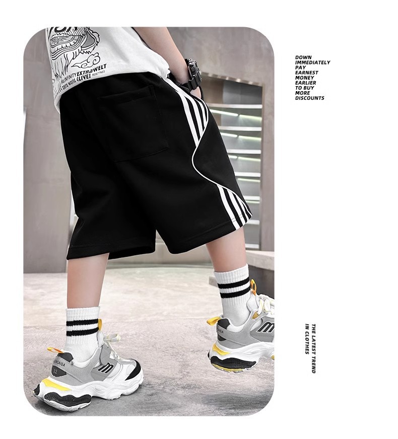 어린이 바지 소년 바지 여름 스포츠 반바지 2024 새로운 어린이 여름 중장 바지 대형 어린이 및 소년 절반 길이 바지스토어 가기