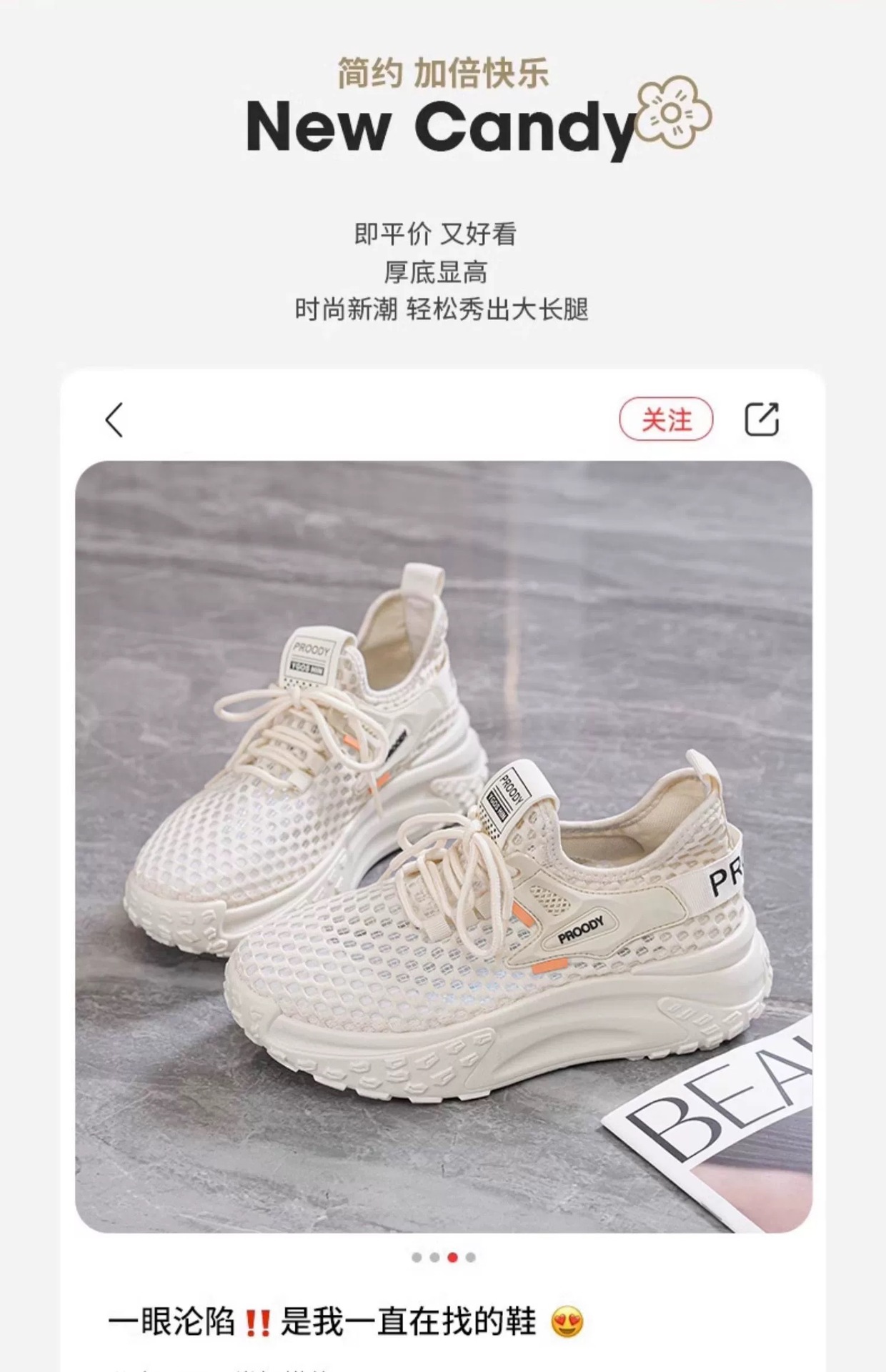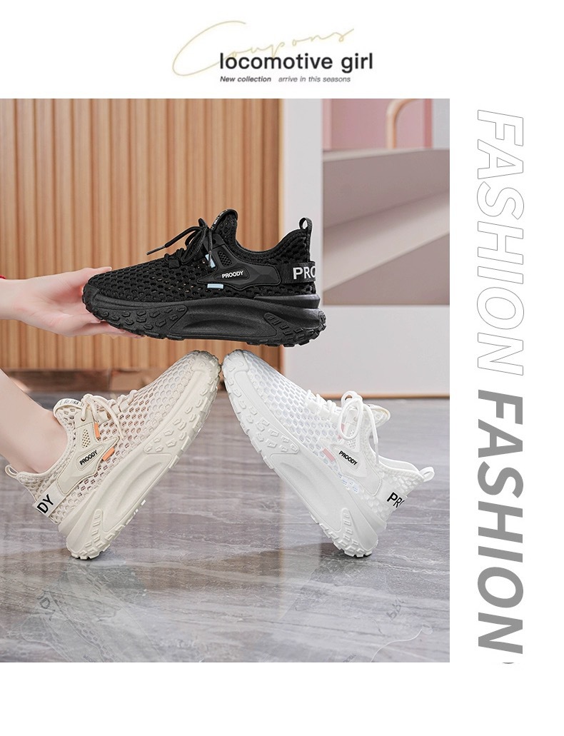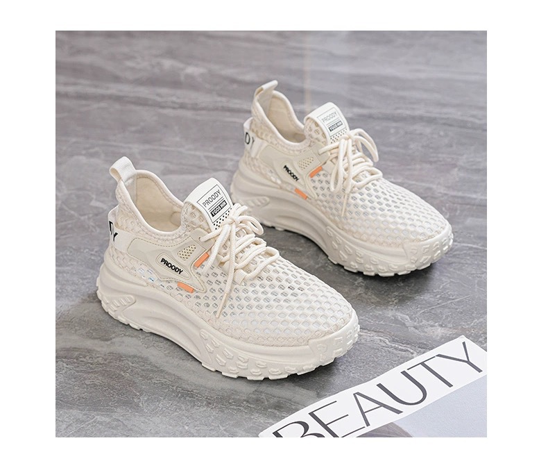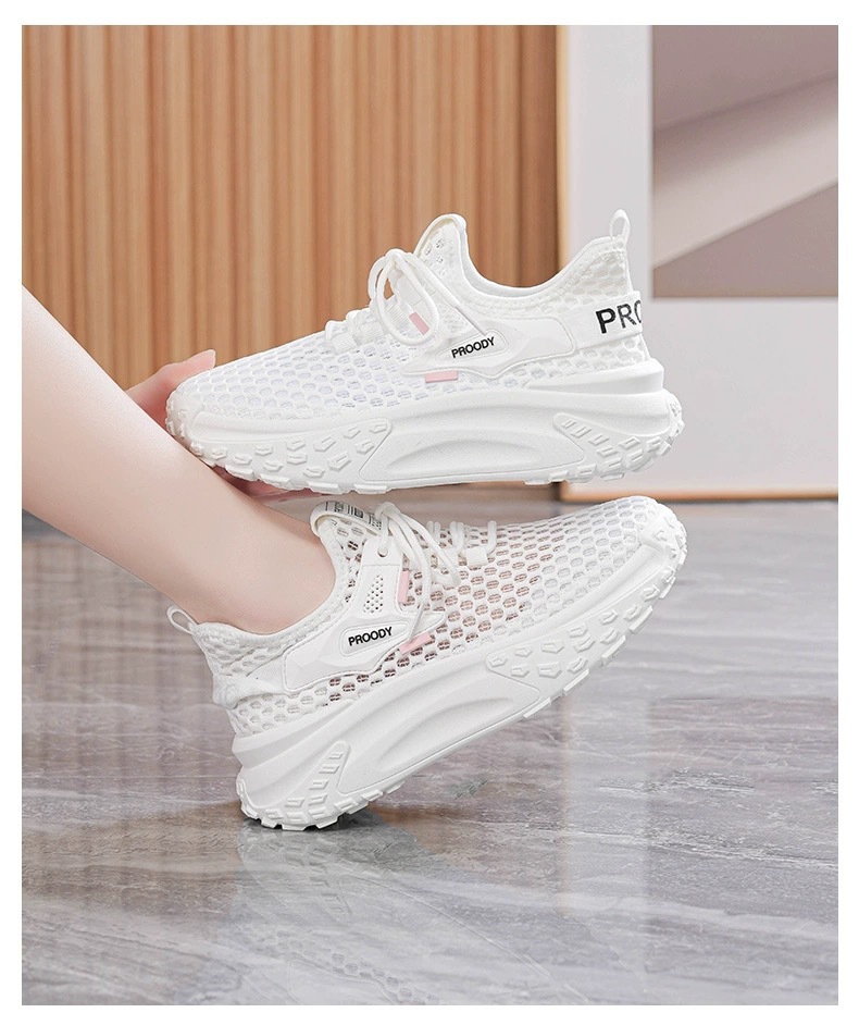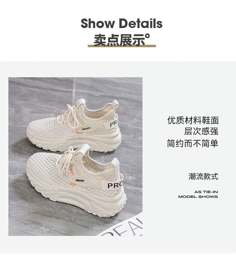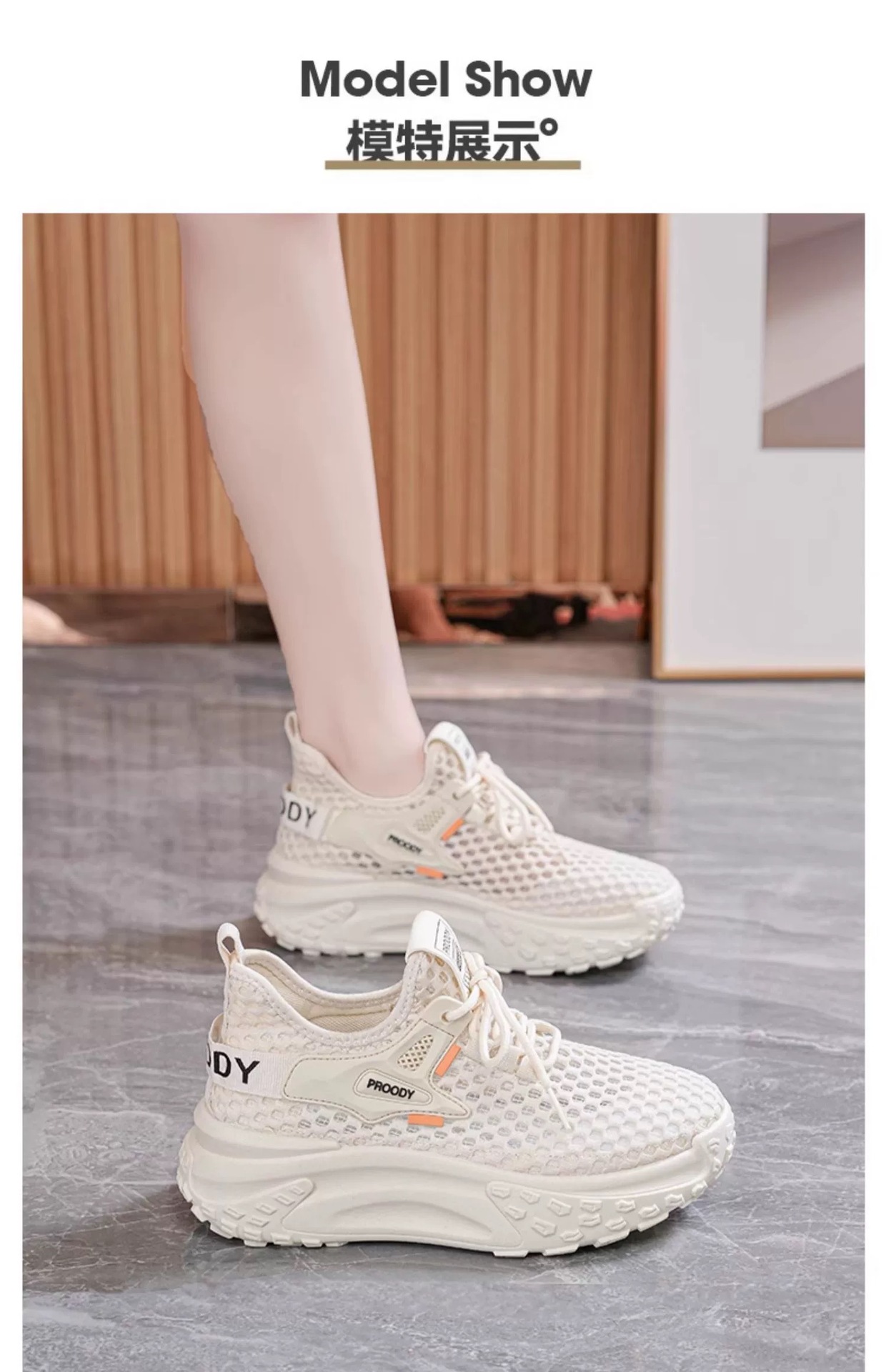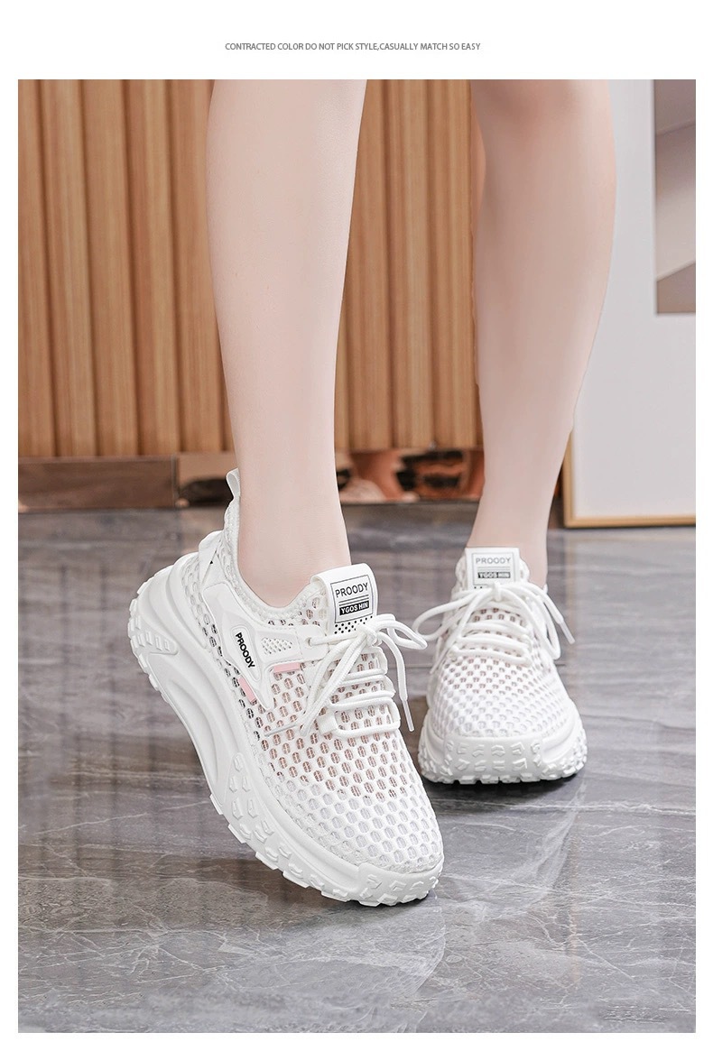 [6 월 20 일 큰 상품] 2024 년 여름 메시 통기성 두꺼운 밑바닥 조커 레저 스포츠 토레 여성 신발 증가