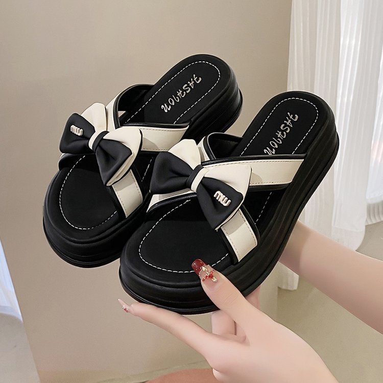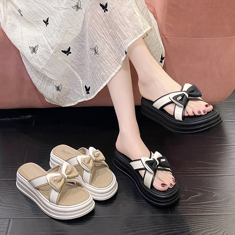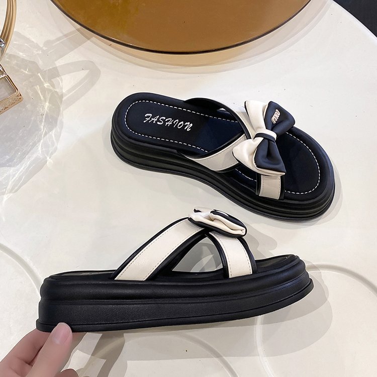 두꺼운 슬리퍼 여성의 여름 외부 착용 2024 새로운 스타일 유행 올 매치 활 미끄럼 방지 여성용 슬라이드스토어 가기