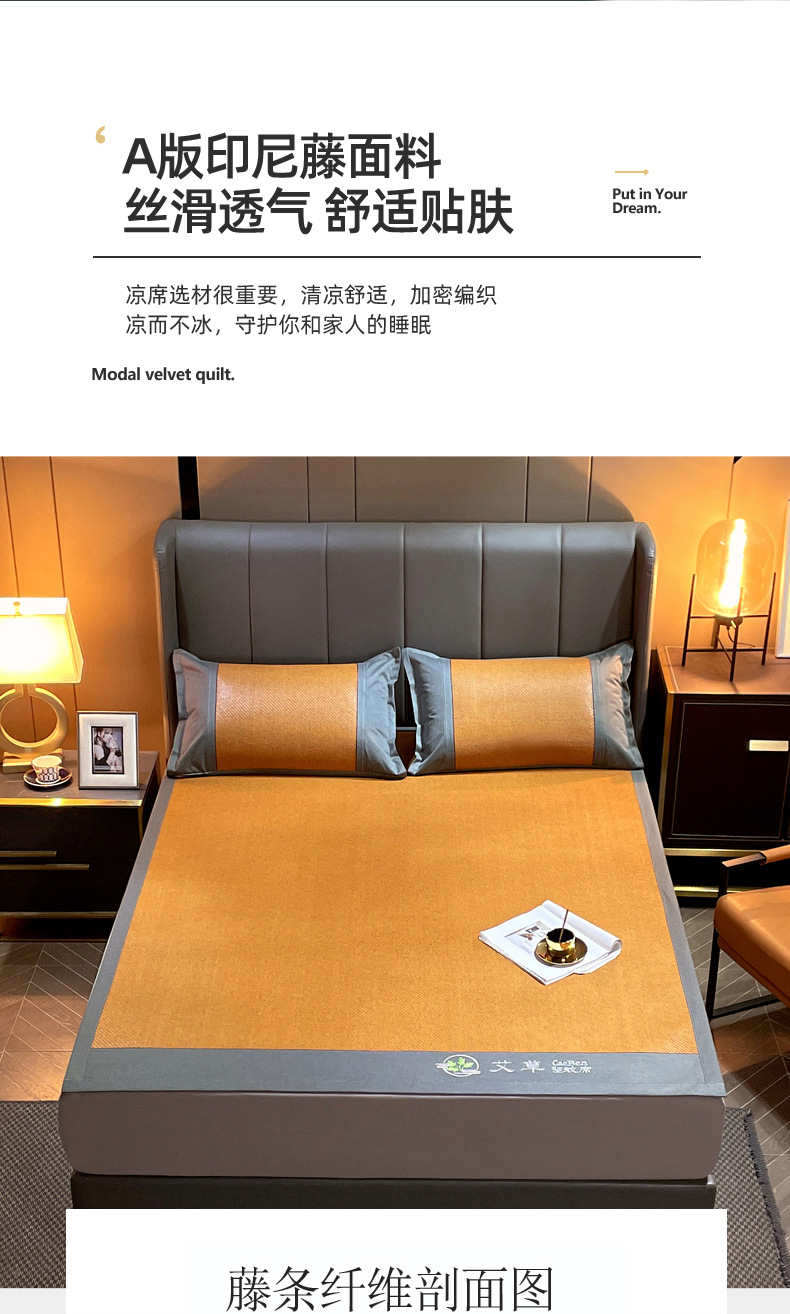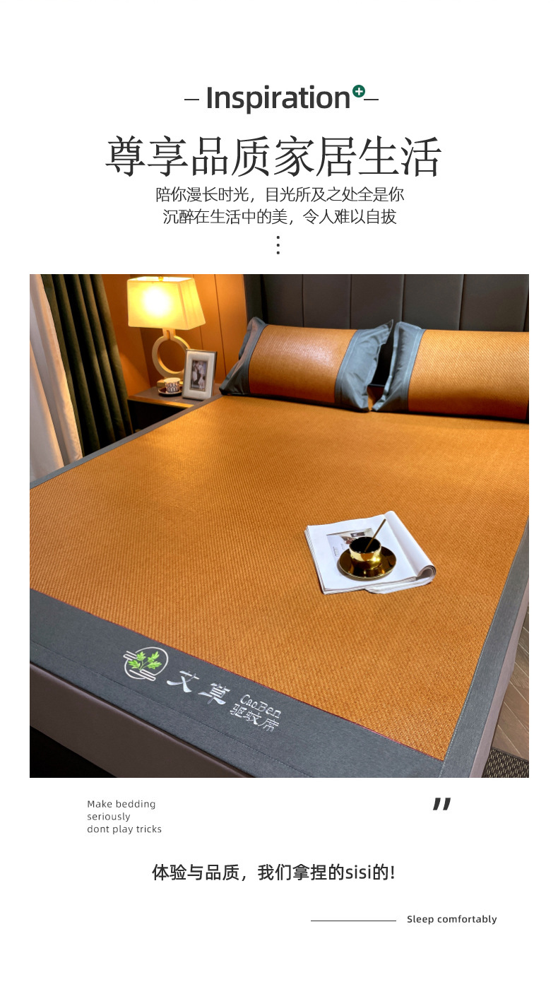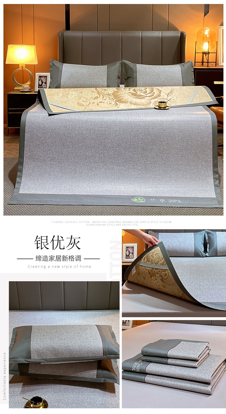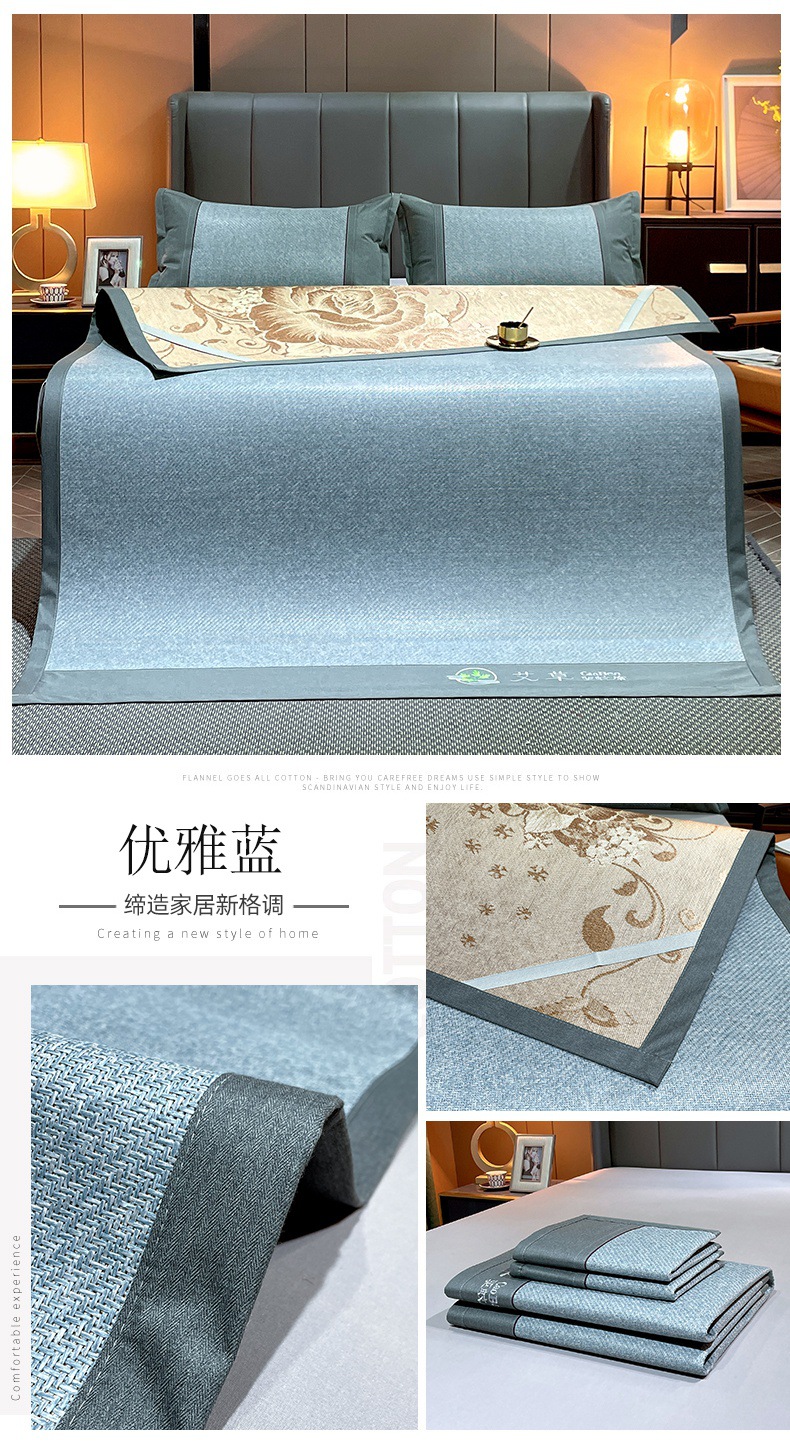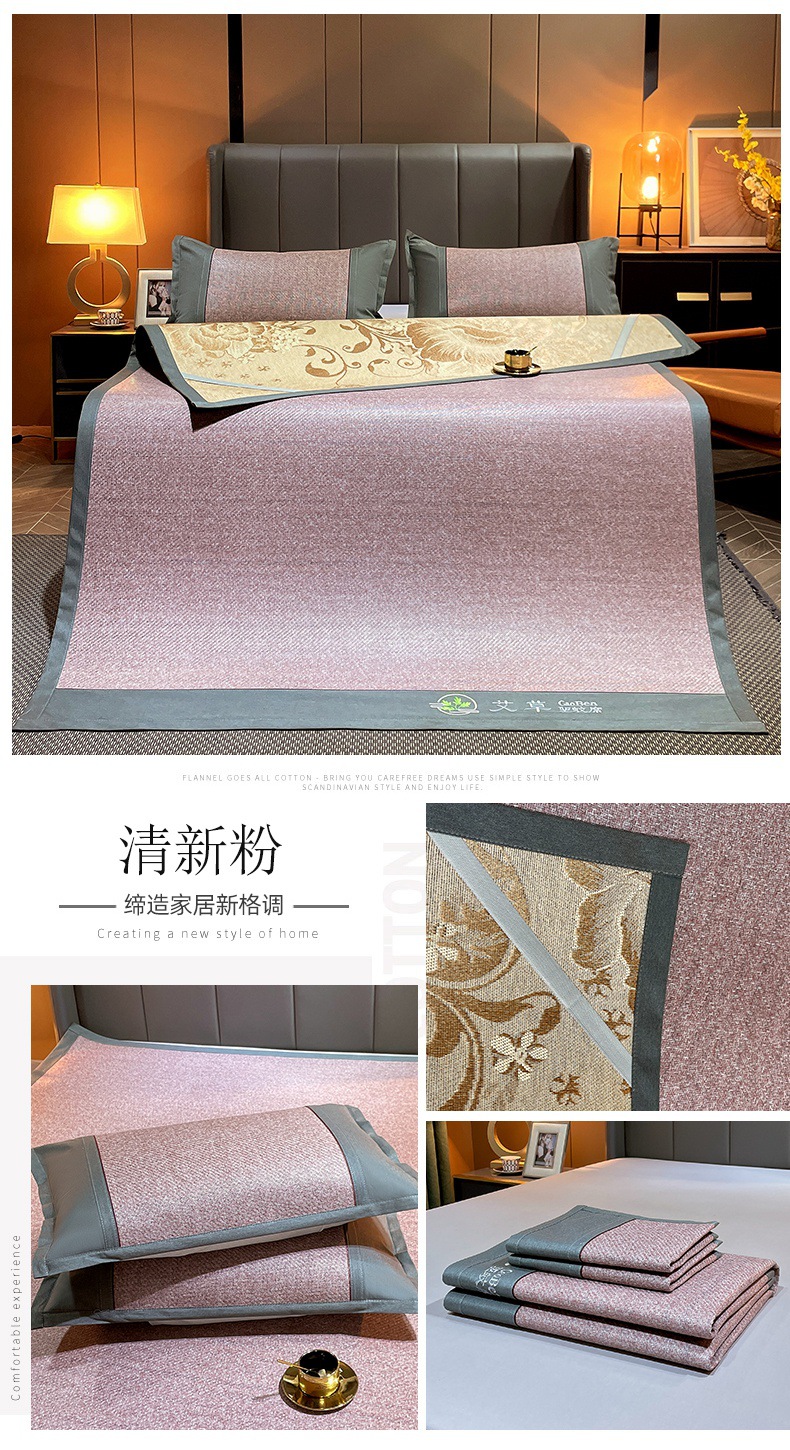 여름 천연 쑥 등나무 매트 아이스 실크 매트 여름 양면 두꺼운 아이스 등나무 매트 3 피스 홈 매트 도매스토어 가기