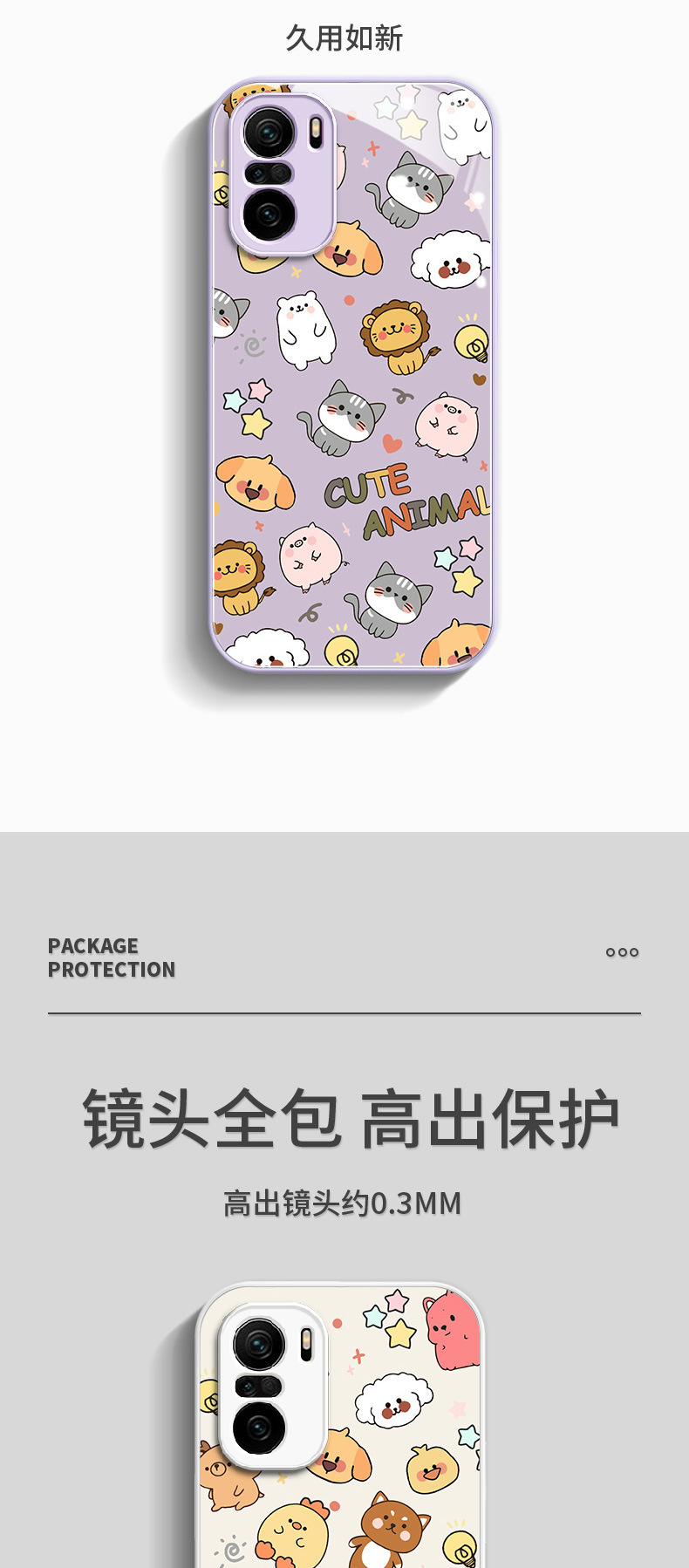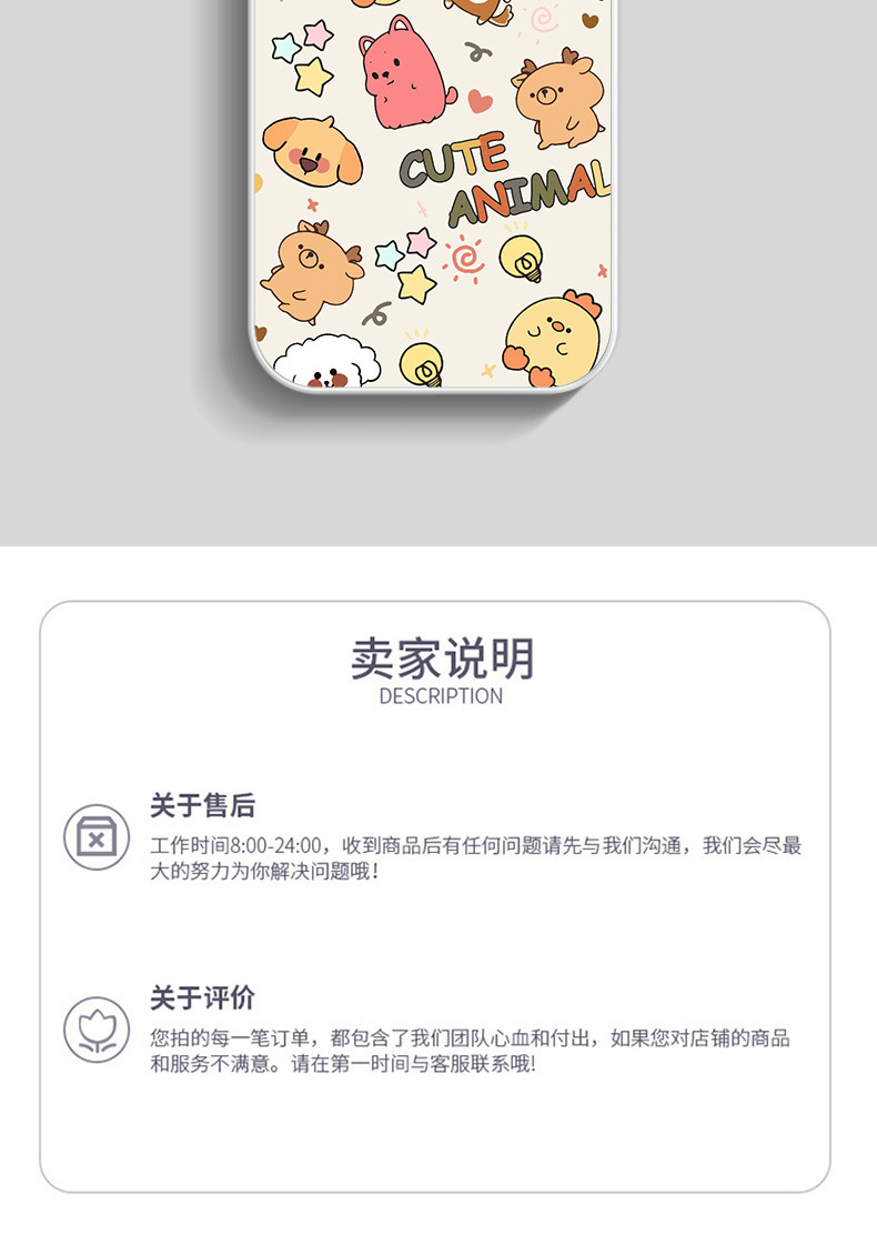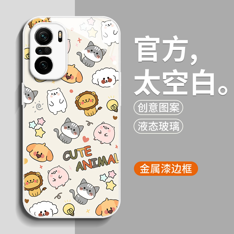 • [유리 쉘] 흰색 C- BL3157 만화 낙서 동물