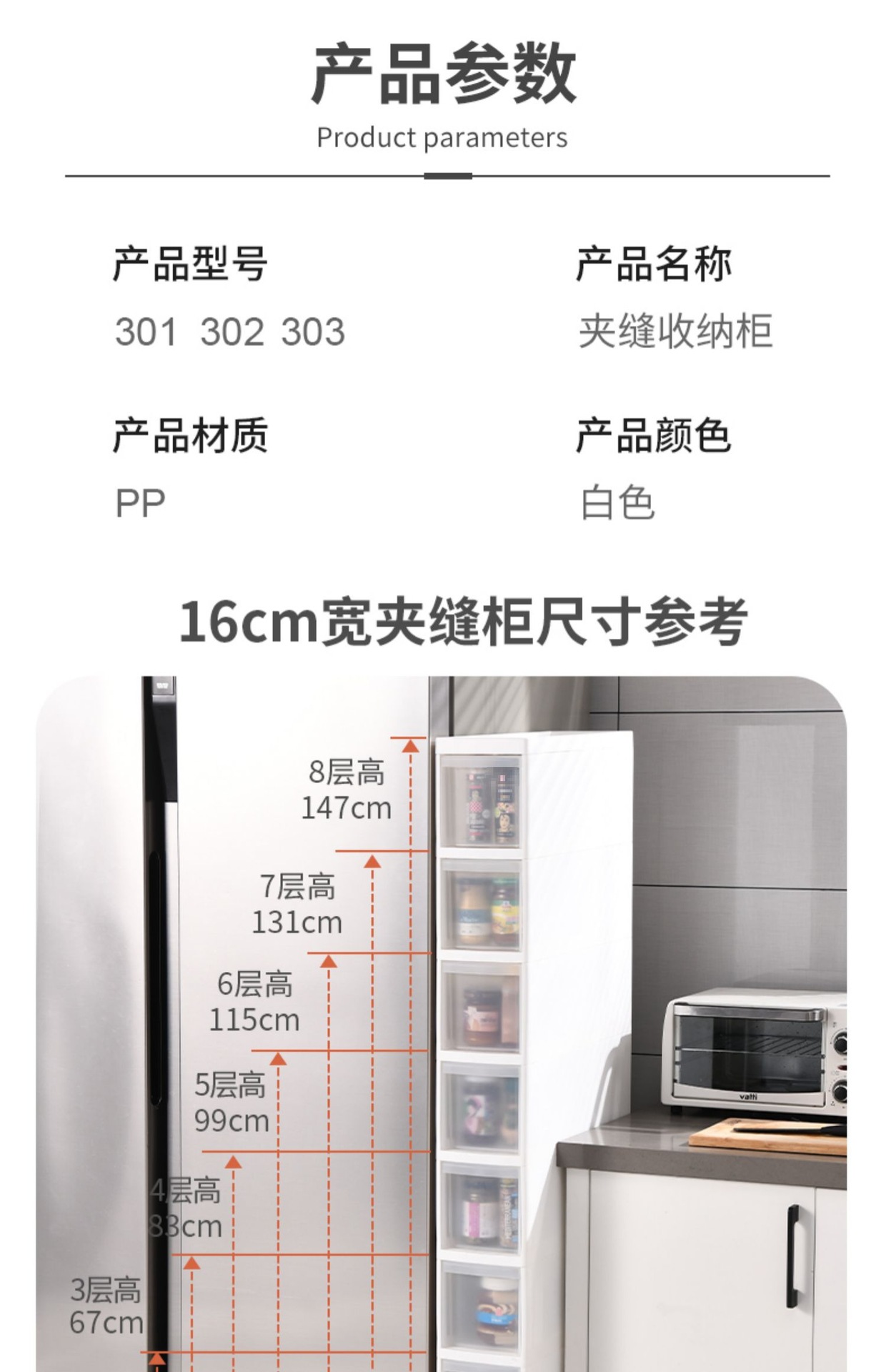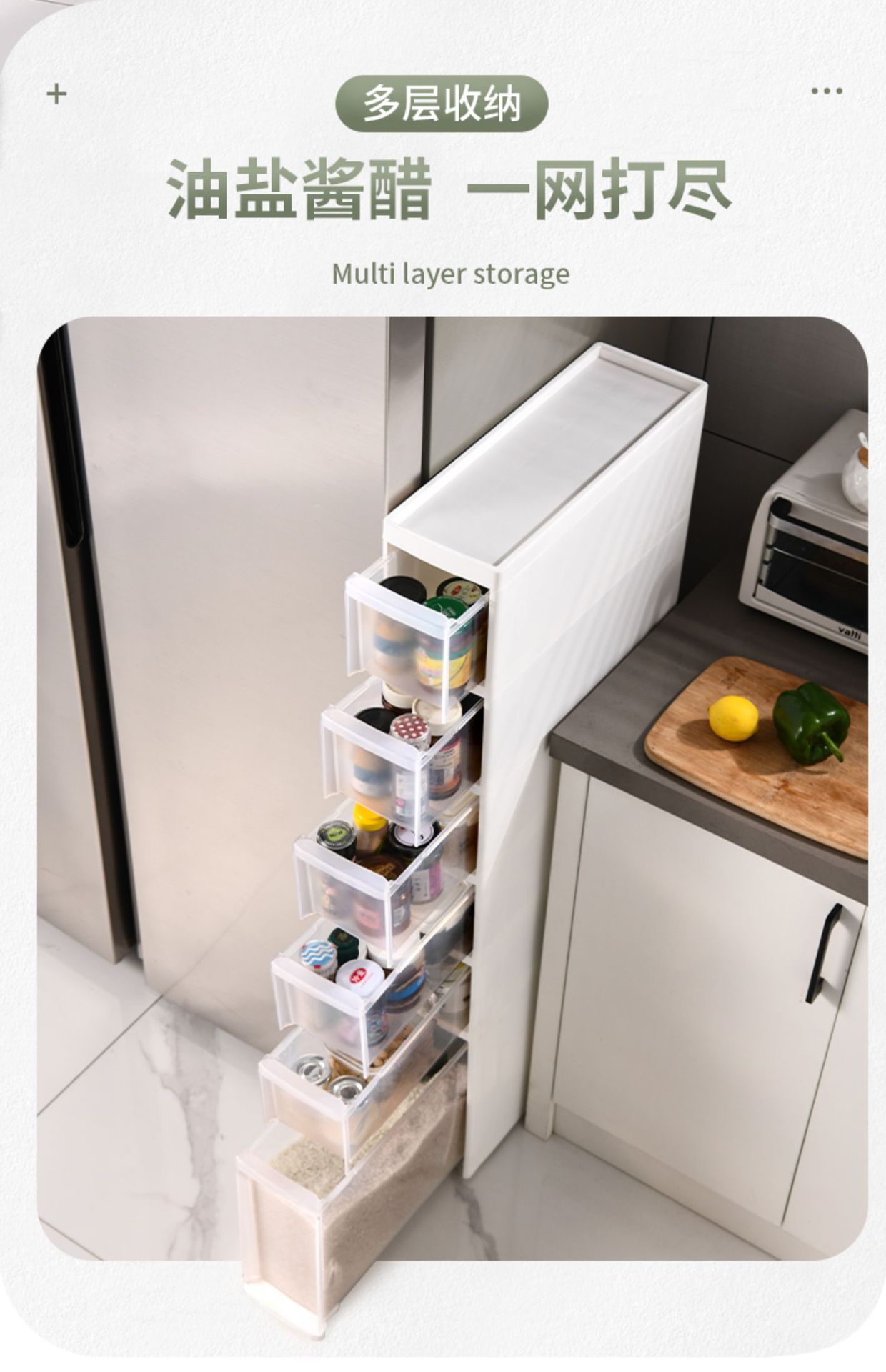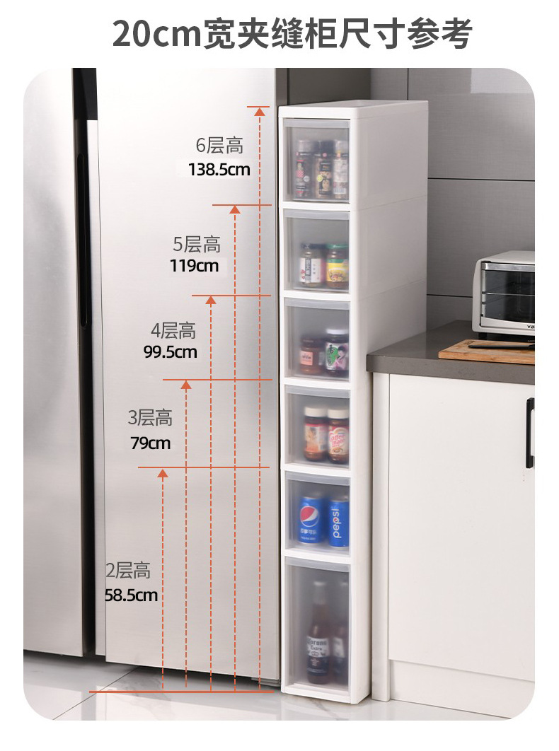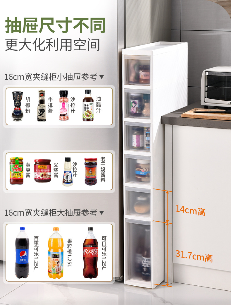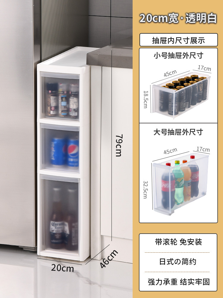 14 ~ 23cm 주방 갭 보관 캐비닛 서랍 랙 냉장고 저장 캐비닛 좁은 갭 캐비닛 식품 측면 저장 신제품