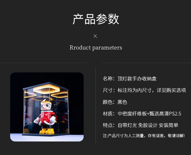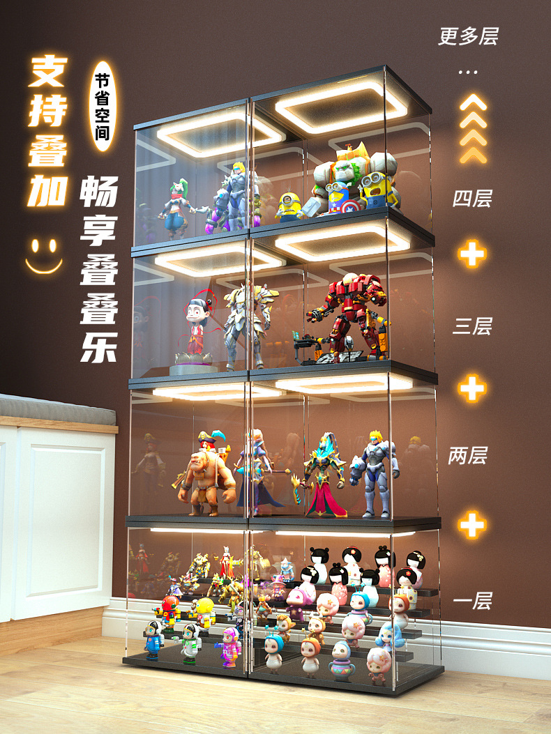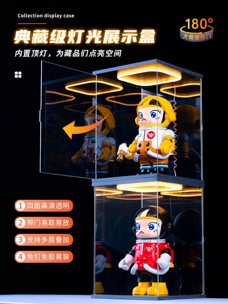 문 건담 모델 장난감 빛 저장 상자 손으로 만든 건물 블록 곰 쌓을 수있는 아크릴 디스플레이 상자가있는 먼지 커버