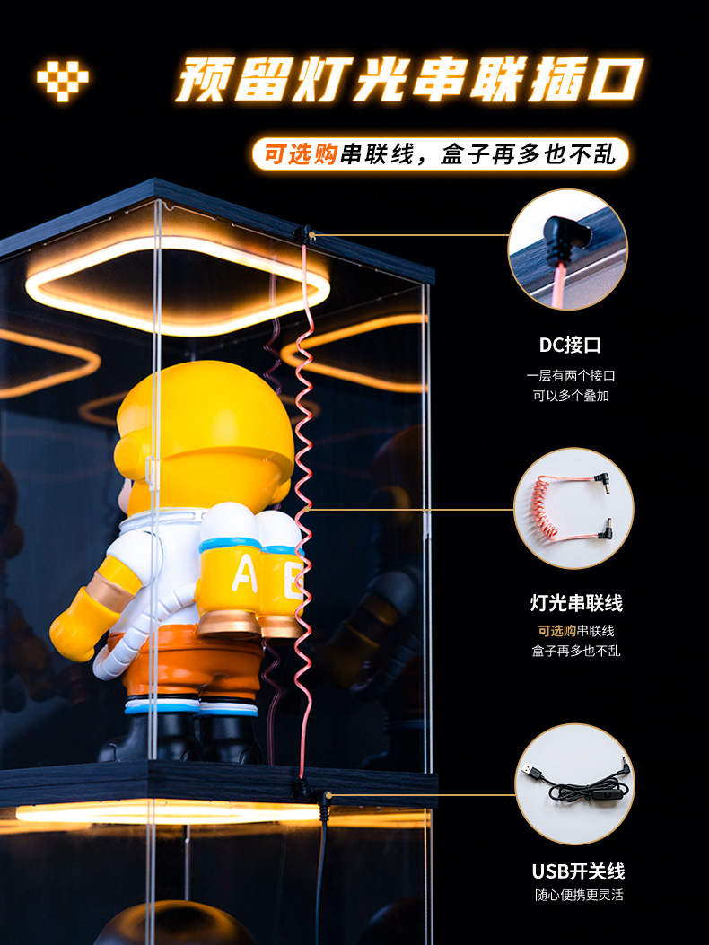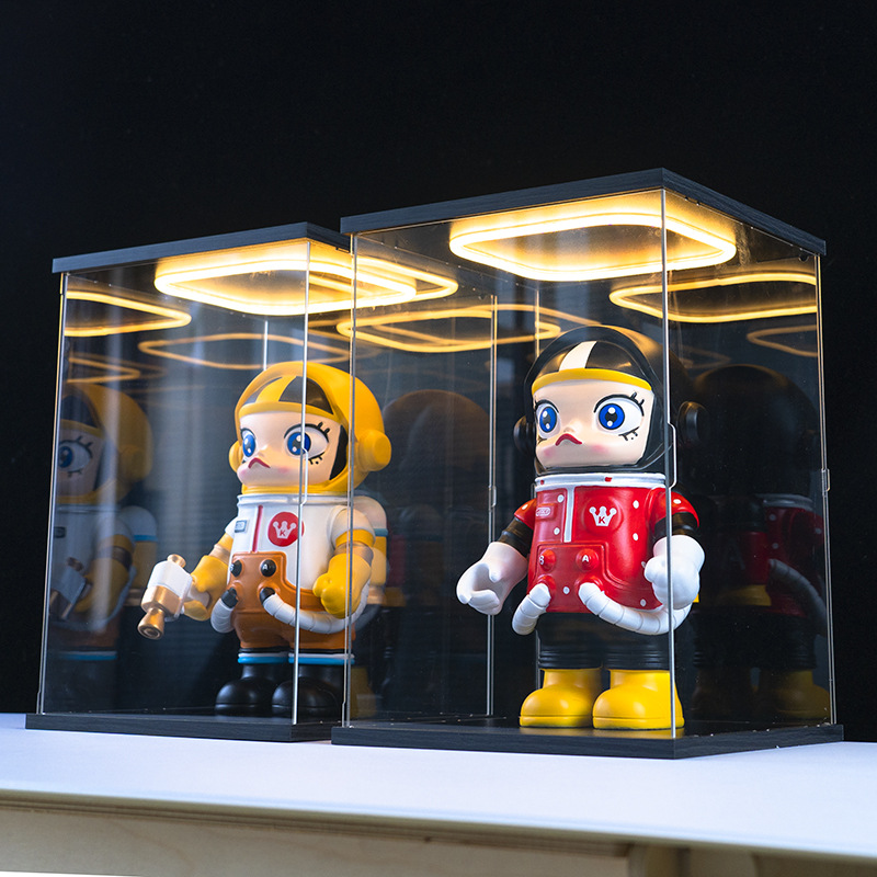 문 건담 모델 장난감 빛 저장 상자 손으로 만든 건물 블록 곰 쌓을 수있는 아크릴 디스플레이 상자가있는 먼지 커버스토어 가기