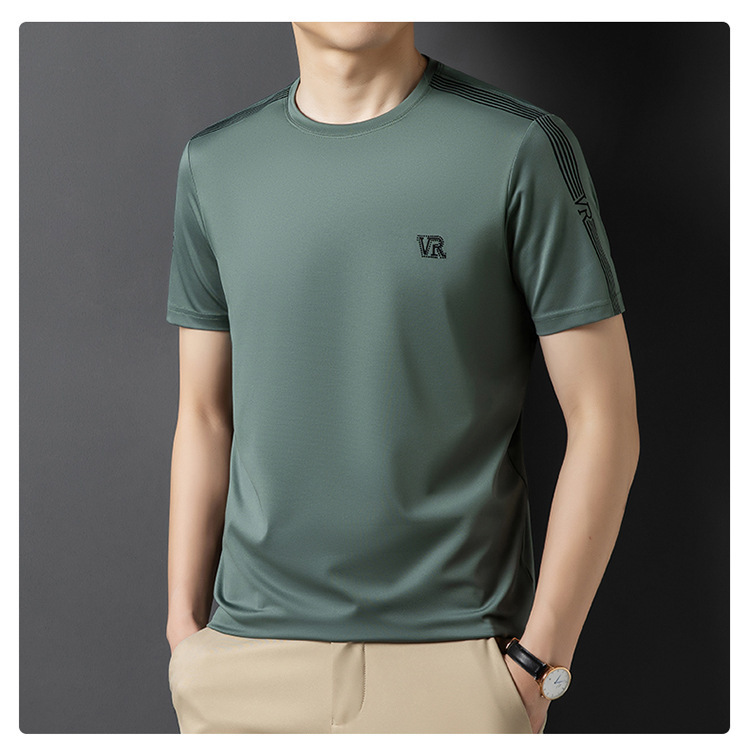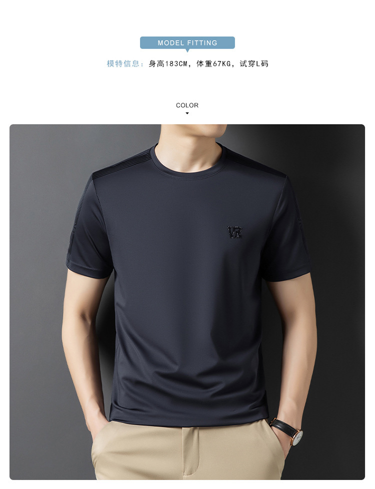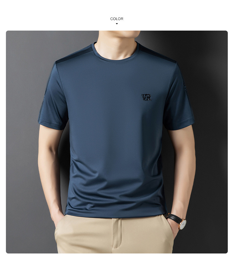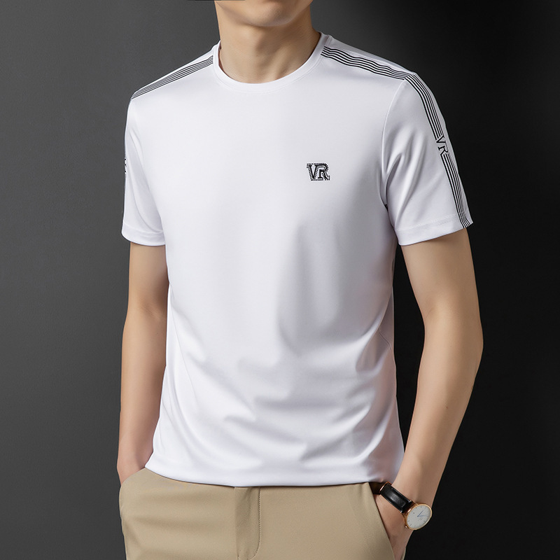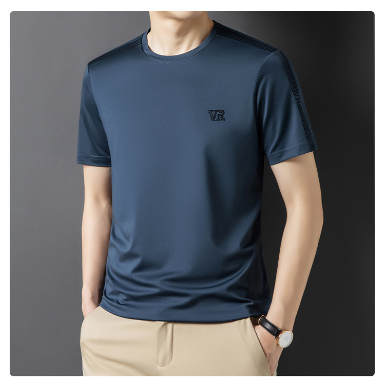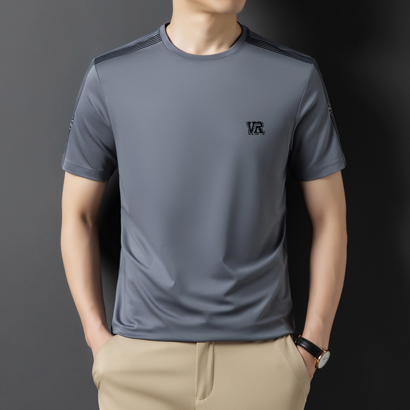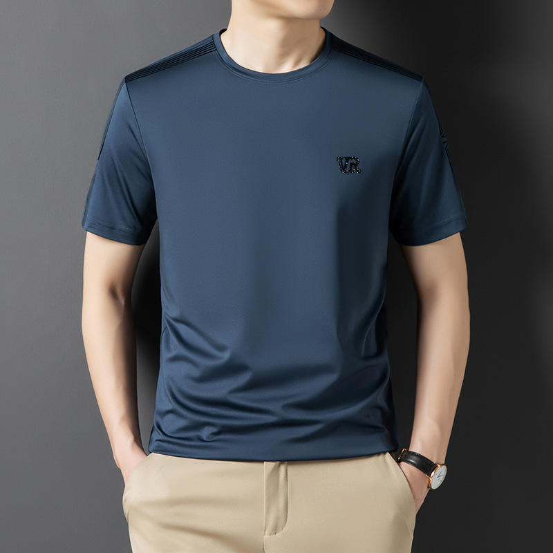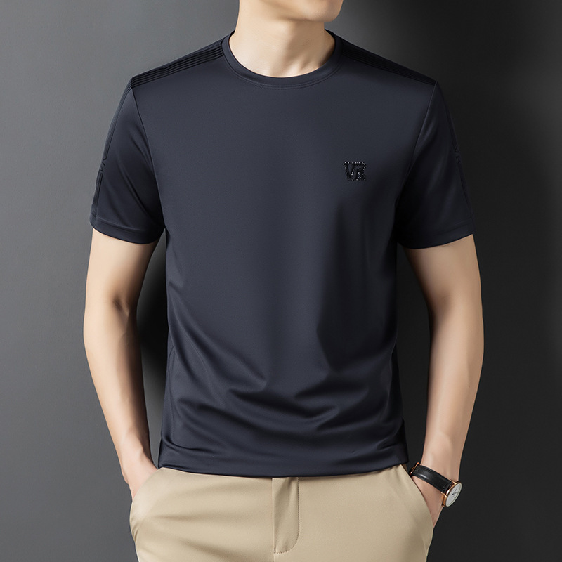 솔리드 컬러 라운드 넥 반팔 남성 티셔츠 2023 여름 패션 캐주얼 루즈 라운드 넥 아이스 실크베이스 셔츠 남성 언더 셔츠