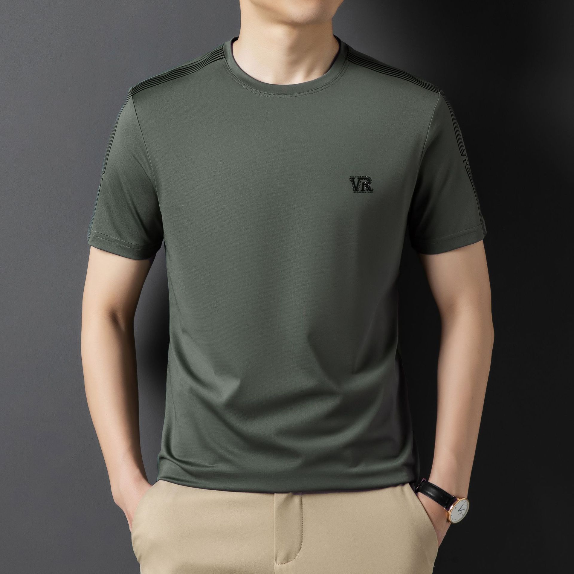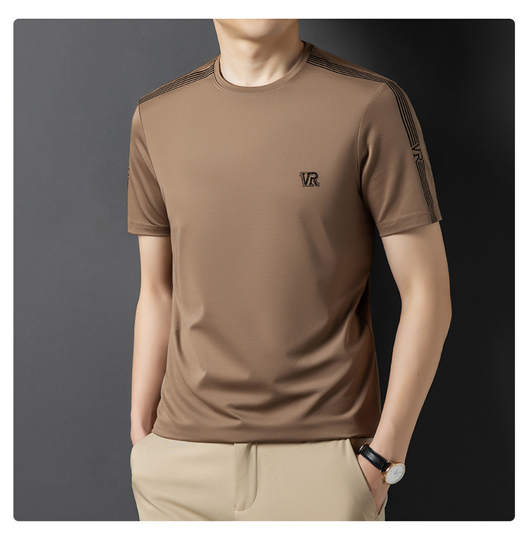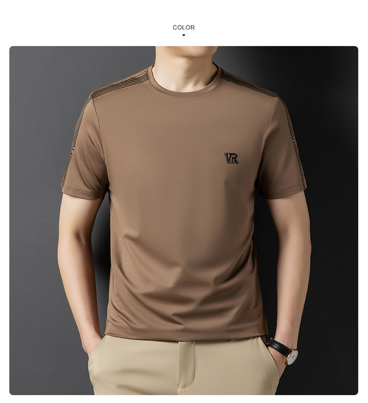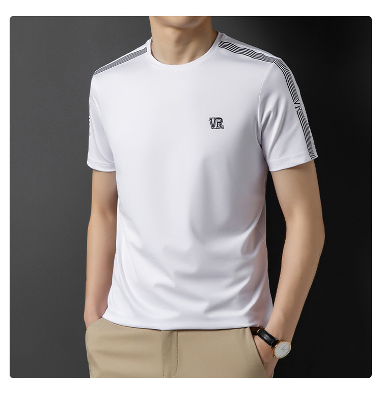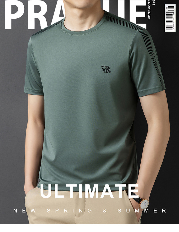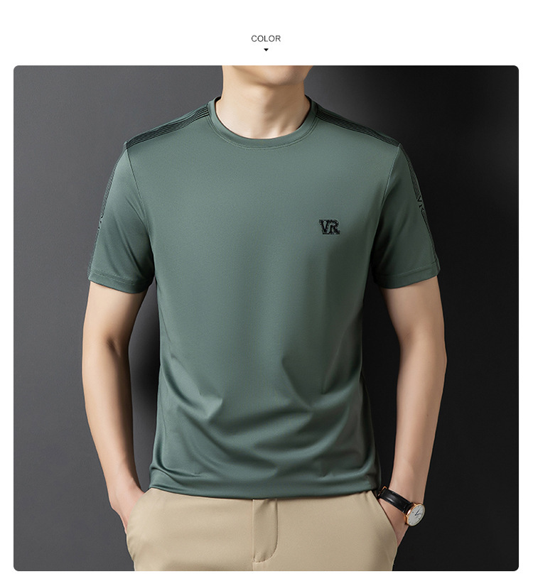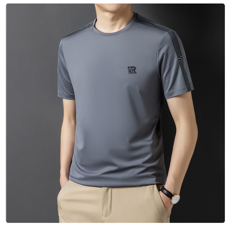 솔리드 컬러 라운드 넥 반팔 남성 티셔츠 2023 여름 패션 캐주얼 루즈 라운드 넥 아이스 실크베이스 셔츠 남성 언더 셔츠