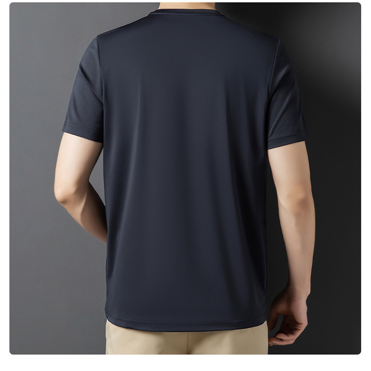 솔리드 컬러 라운드 넥 반팔 남성 티셔츠 2023 여름 패션 캐주얼 루즈 라운드 넥 아이스 실크베이스 셔츠 남성 언더 셔츠스토어 가기