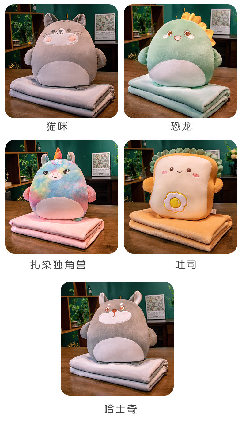 만화 자동차 베개 퀼트 이중 사용 3 대 1 쿠션 담요 인터포스식 에어컨 담요 사무실 낮잠 베개