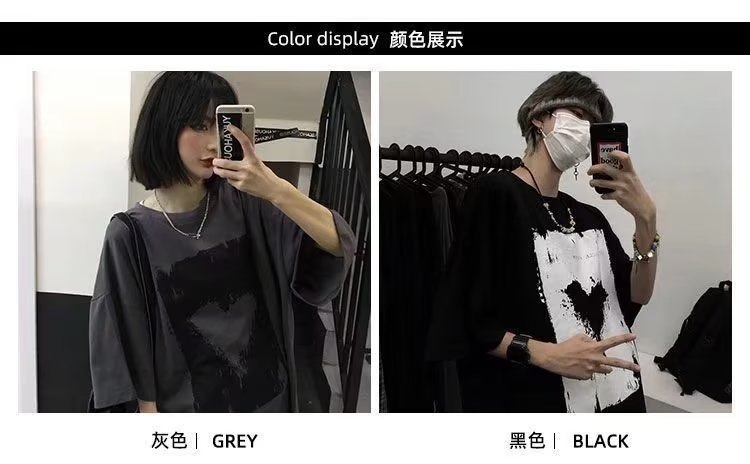 아메리칸 스타일 트렌디 브랜드 반팔 티셔츠 여성 서머인 트렌디 커플의 올매치 루즈 플러스 사이즈 러브 프린트 반팔 티셔츠스토어 가기