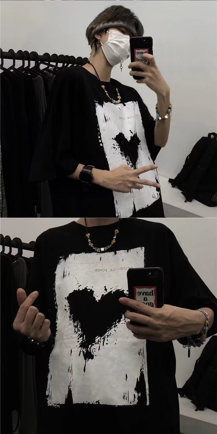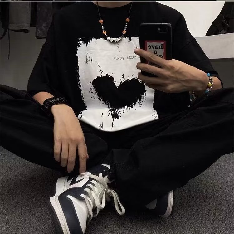 아메리칸 스타일 트렌디 브랜드 반팔 티셔츠 여성 서머인 트렌디 커플의 올매치 루즈 플러스 사이즈 러브 프린트 반팔 티셔츠