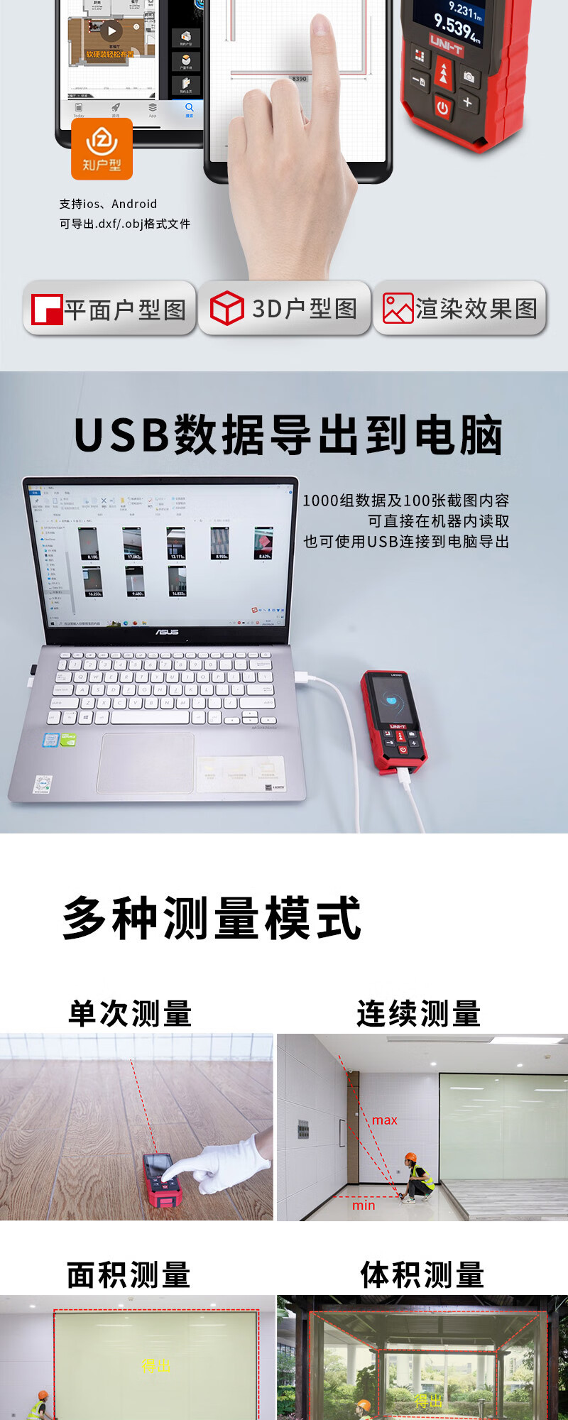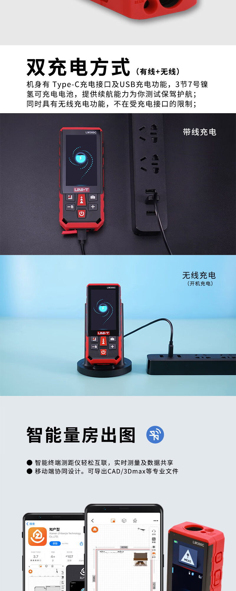 UNI-T Uleed LM300C 레이저 범위 파인더 블루투스 휴대용 야외 고정밀 적외선 측정실스토어 가기