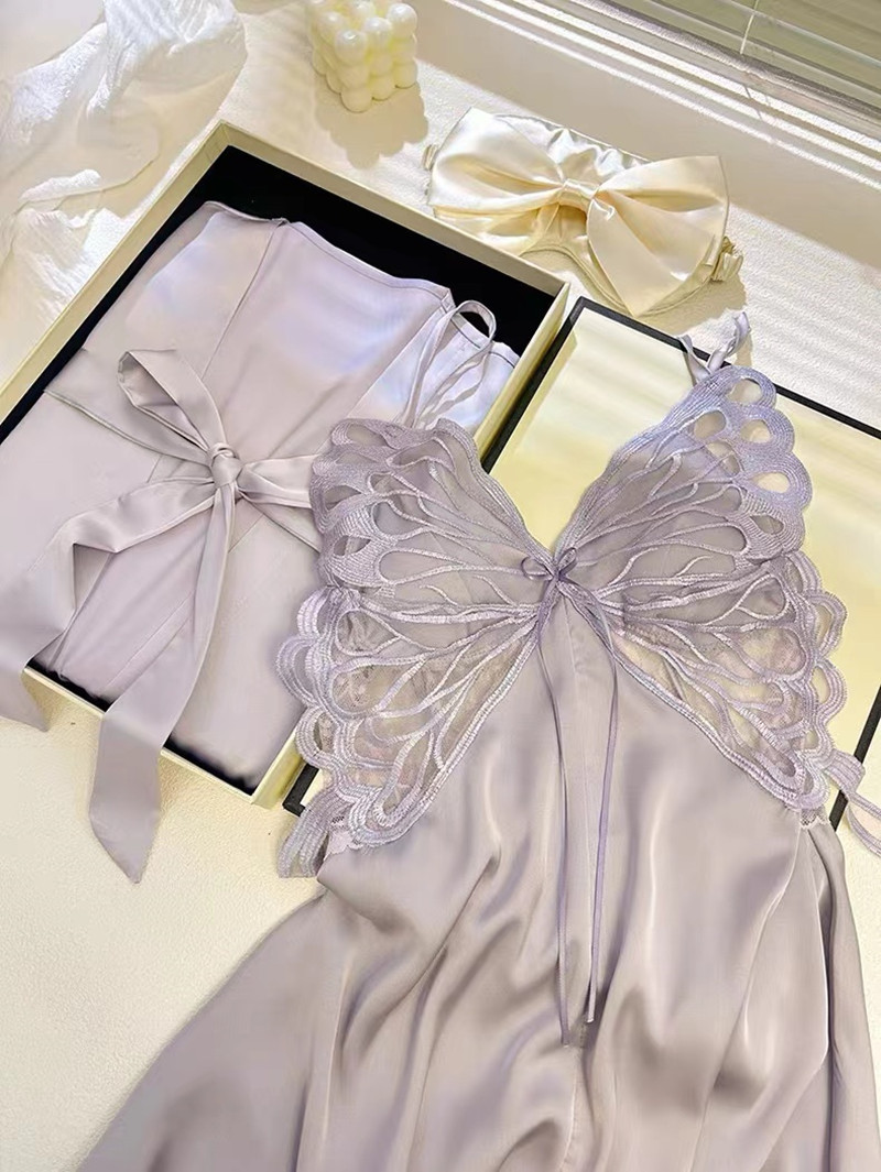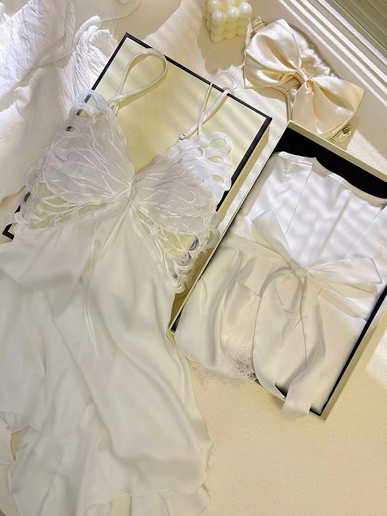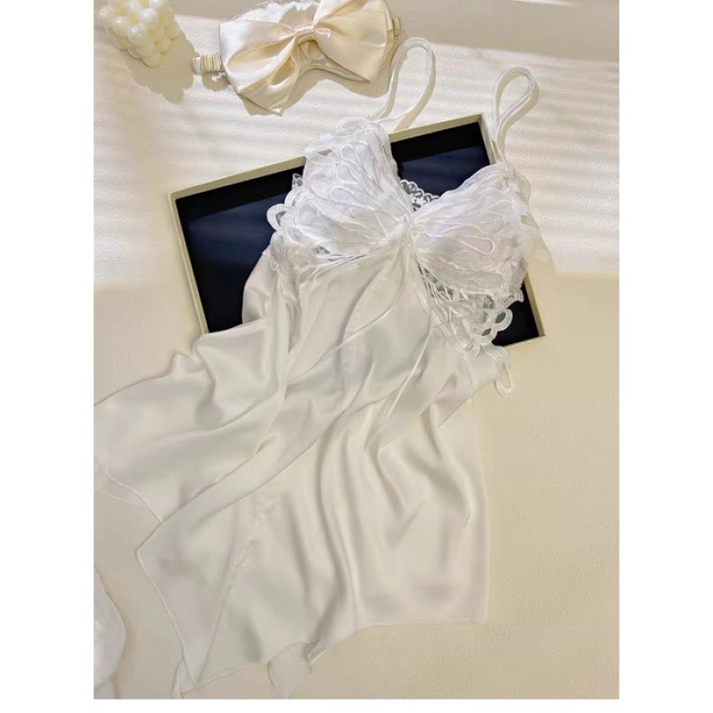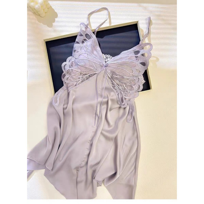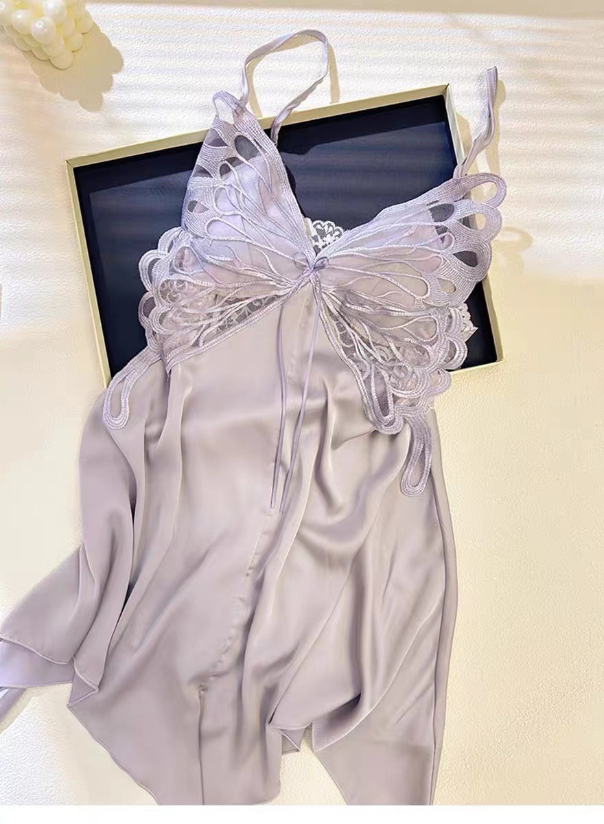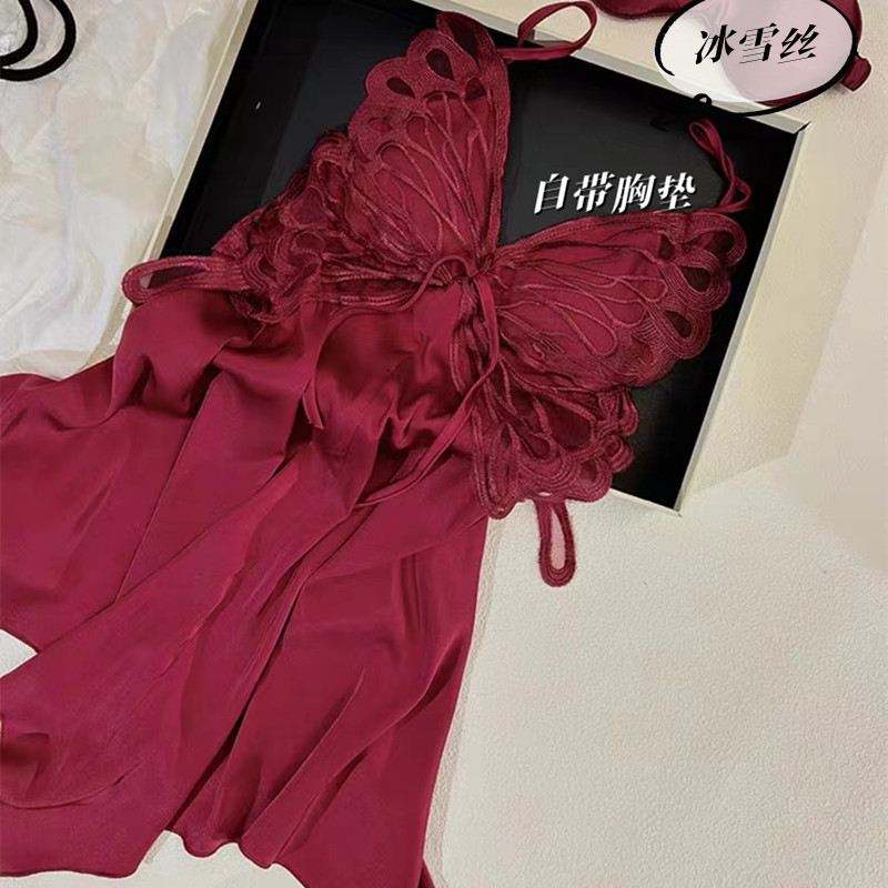 봄 여름 인기 섹시 가슴 패드, 고급 버터플라이 레이디 아이스 실크 서스펜더 잠옷, 투피스 잠옷, 홈웨어스토어 가기
