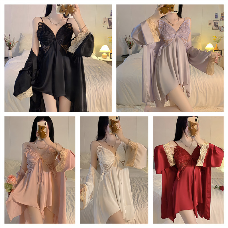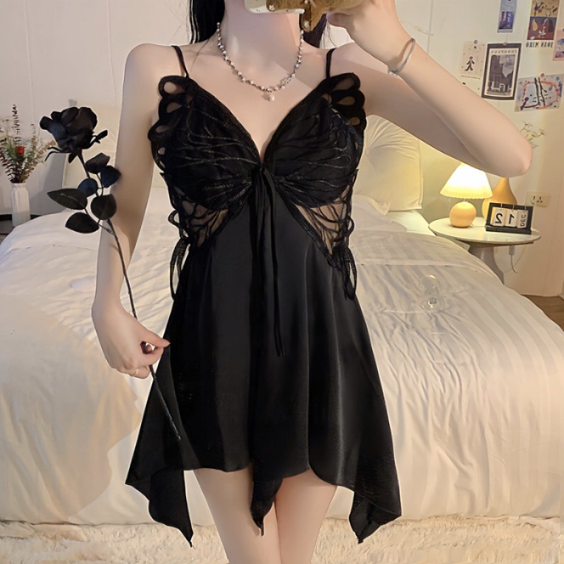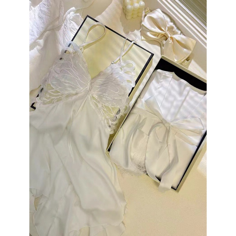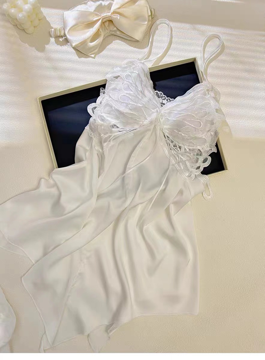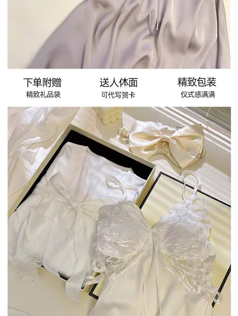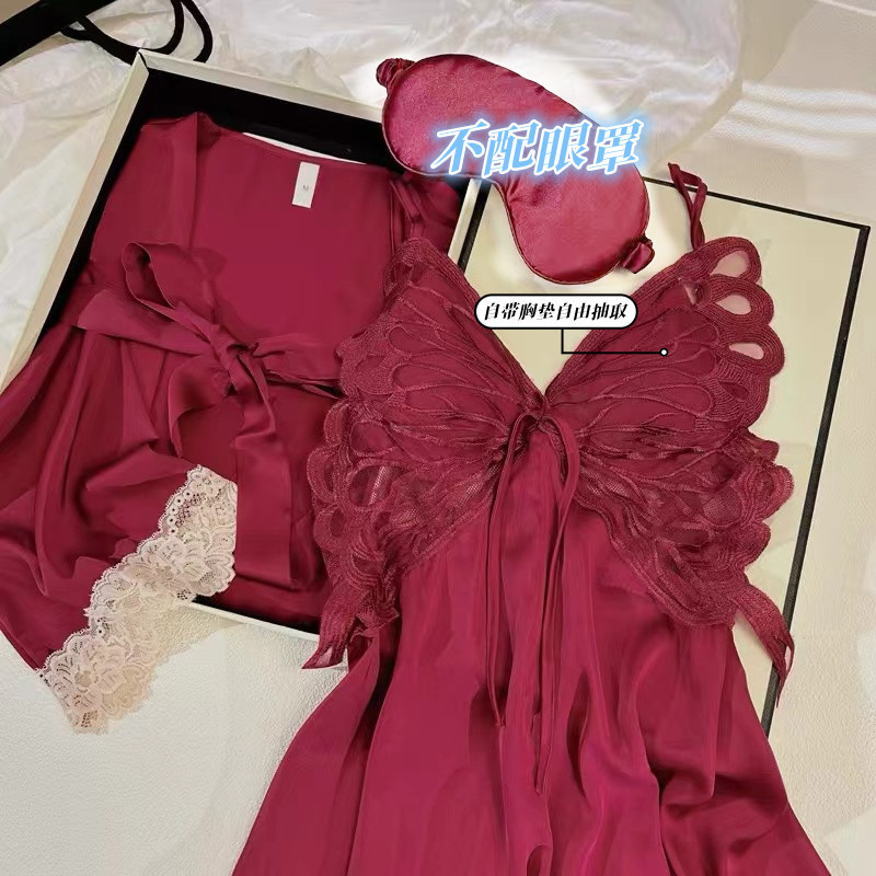 봄 여름 인기 섹시 가슴 패드, 고급 버터플라이 레이디 아이스 실크 서스펜더 잠옷, 투피스 잠옷, 홈웨어스토어 가기