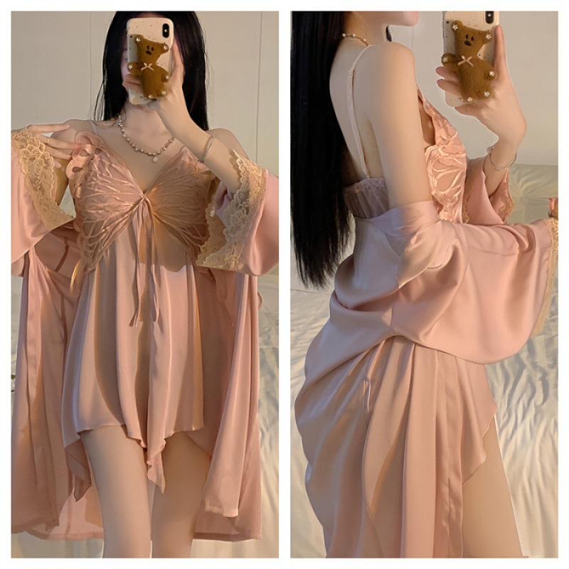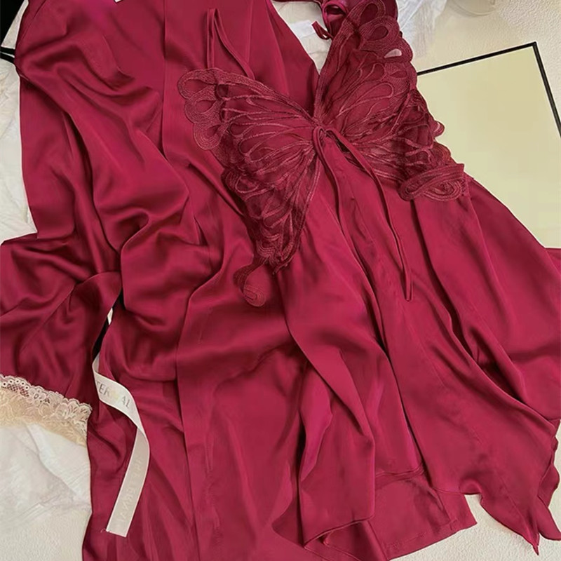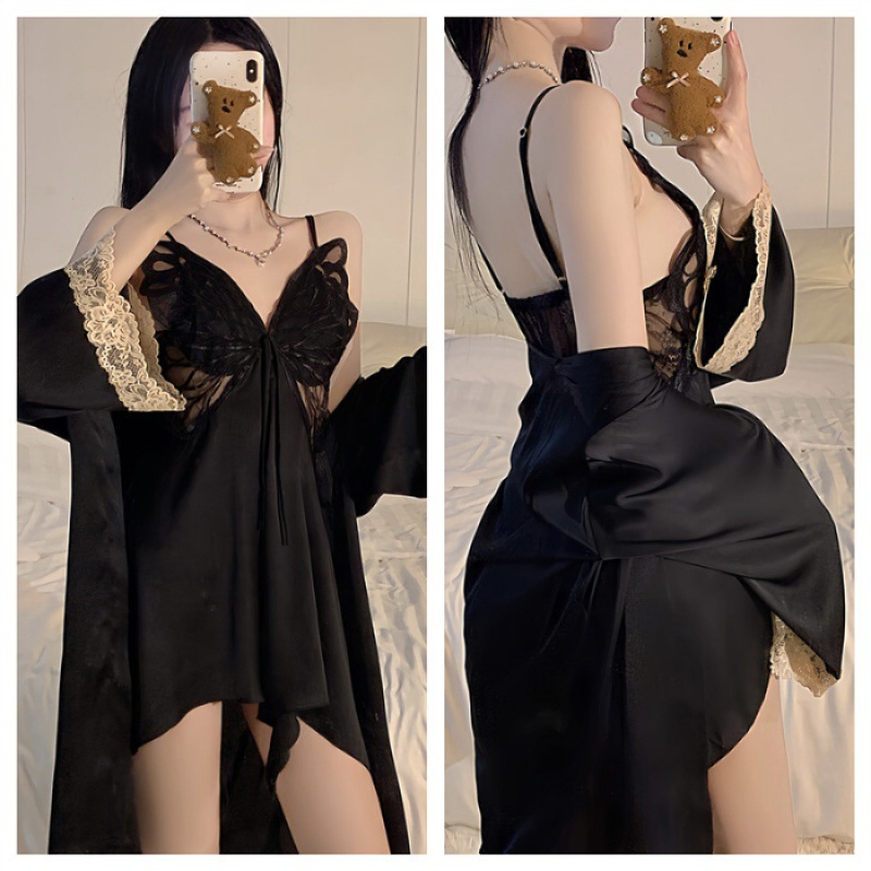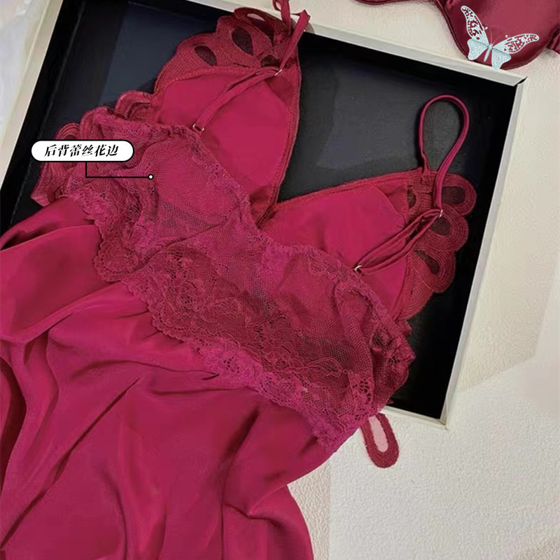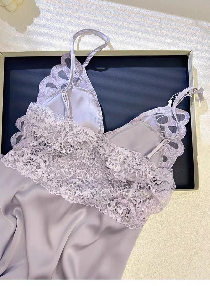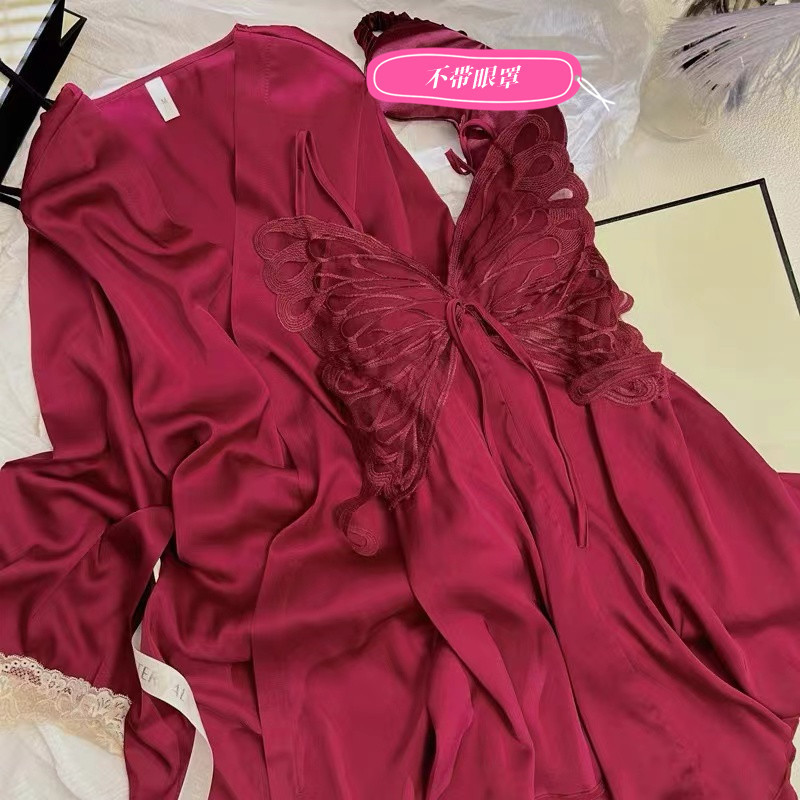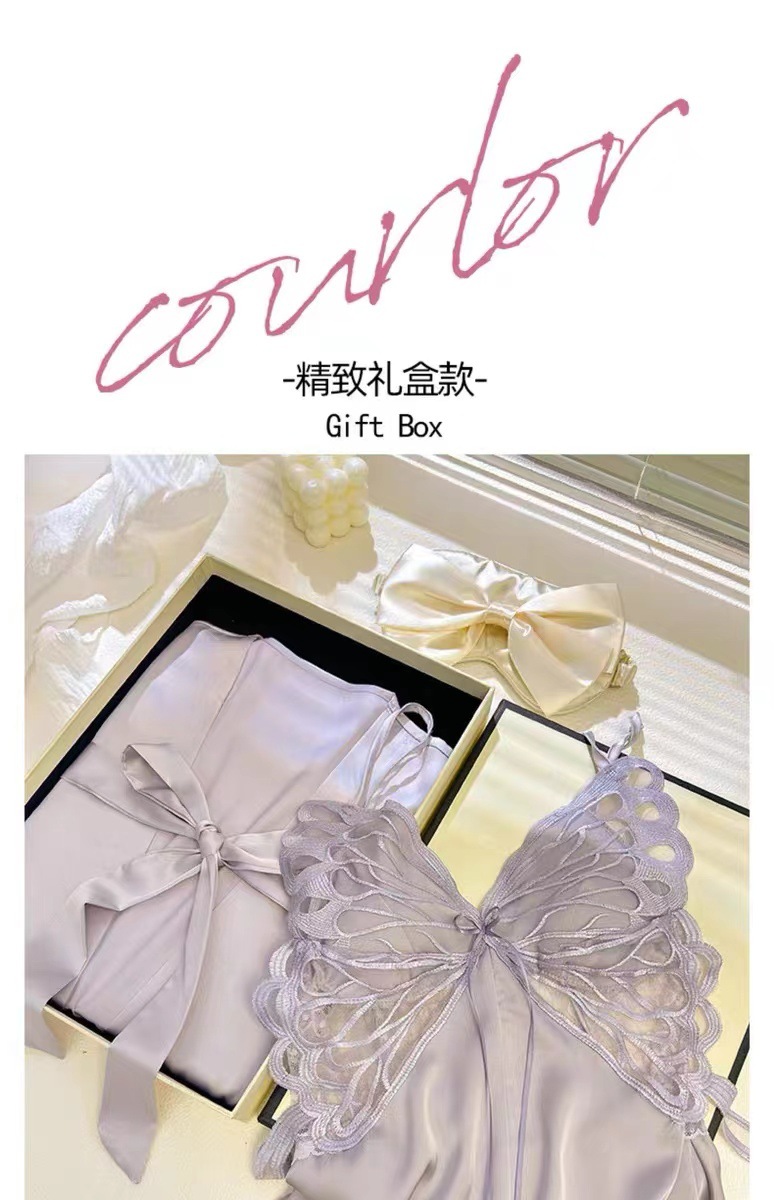 봄 여름 인기 섹시 가슴 패드, 고급 버터플라이 레이디 아이스 실크 서스펜더 잠옷, 투피스 잠옷, 홈웨어스토어 가기