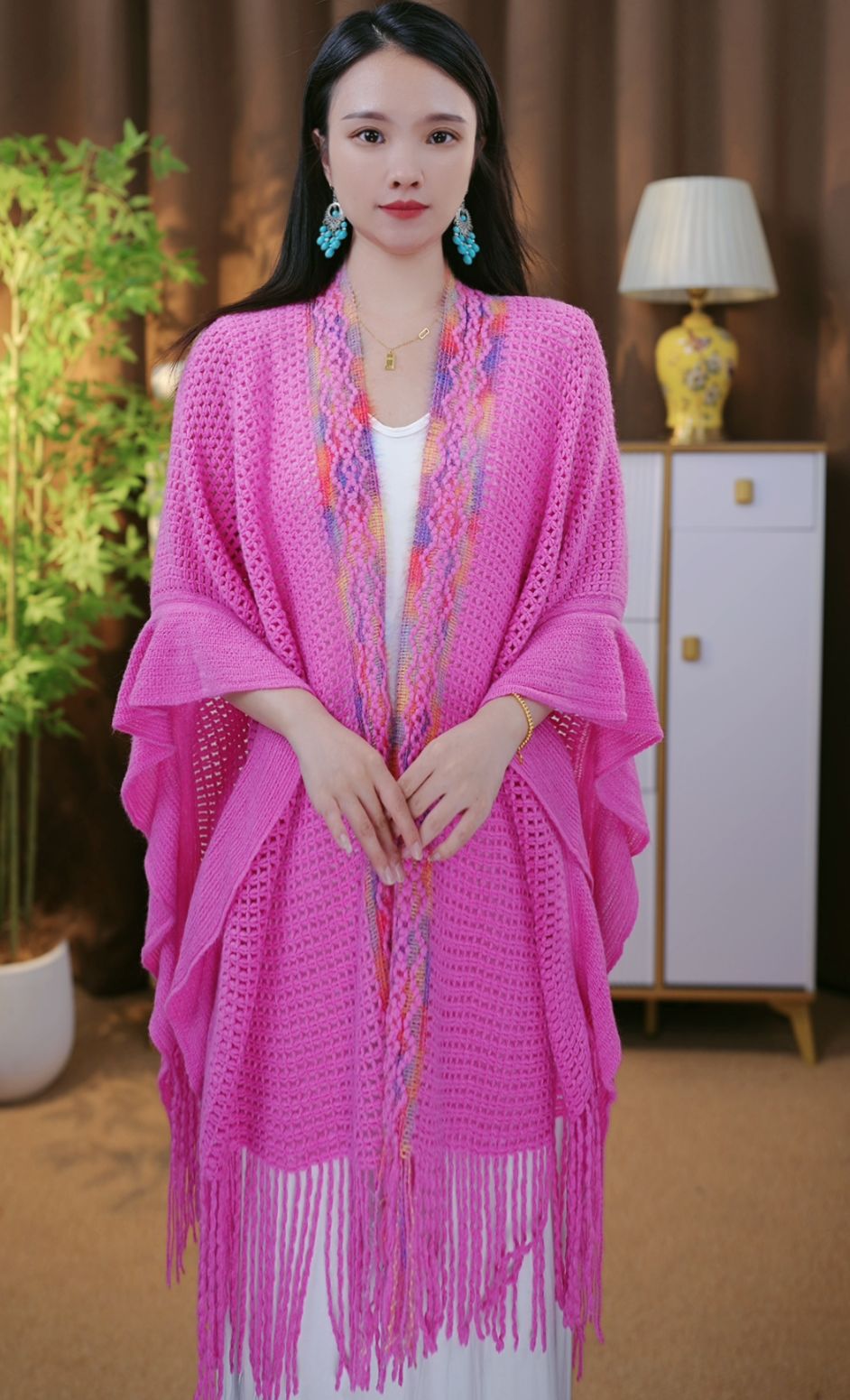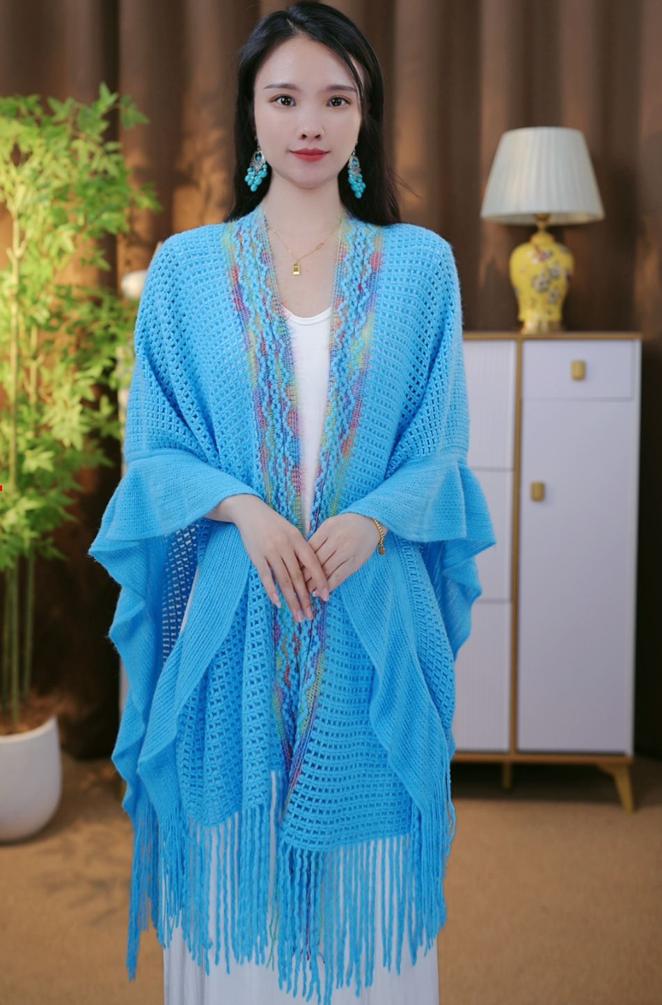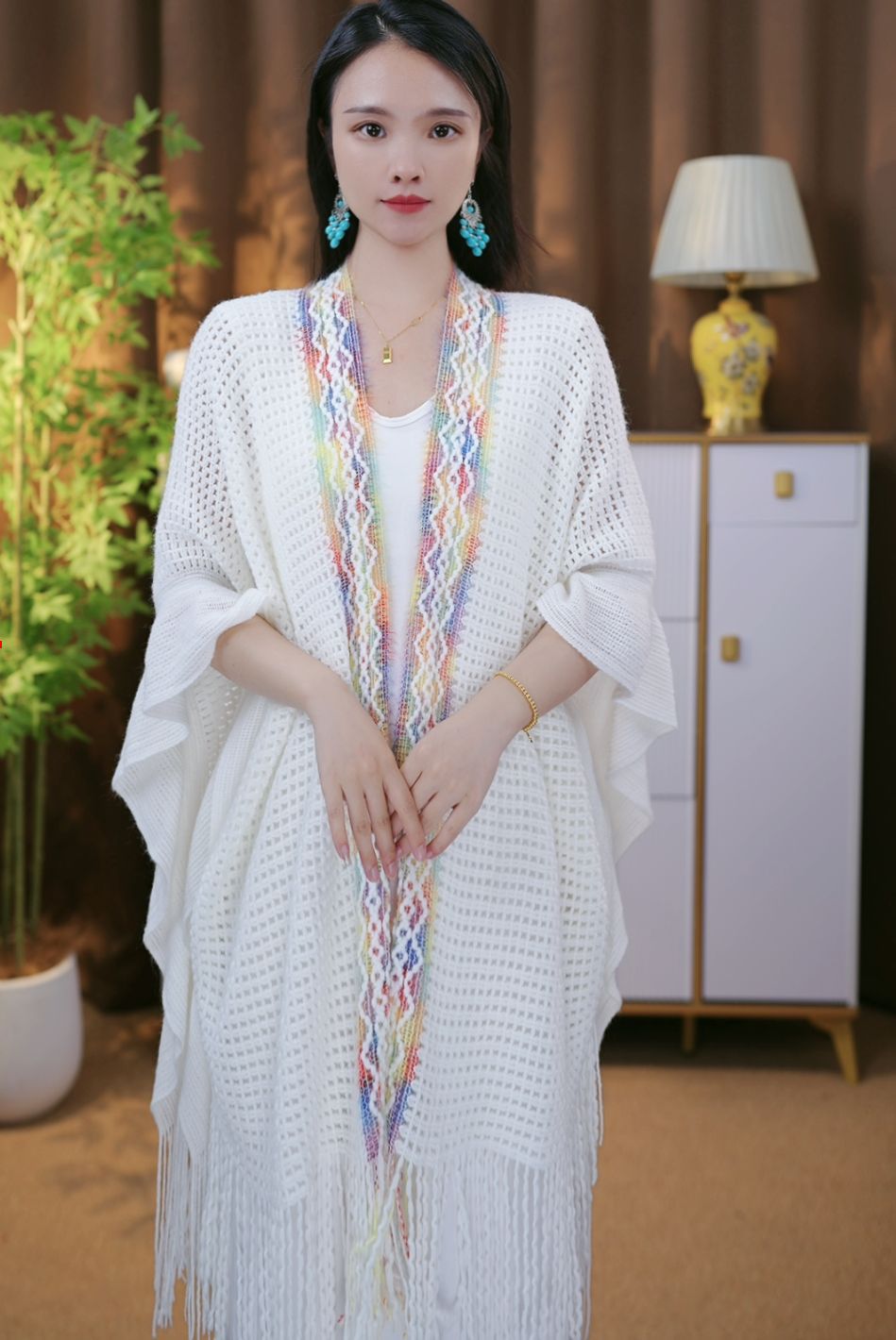 인터넷 축하 새로운 민족 스타일 목도리 윈난 여행 사진 선 스크린 카디건 목도리 여름과 가을 니트 패션 올 매치 여성