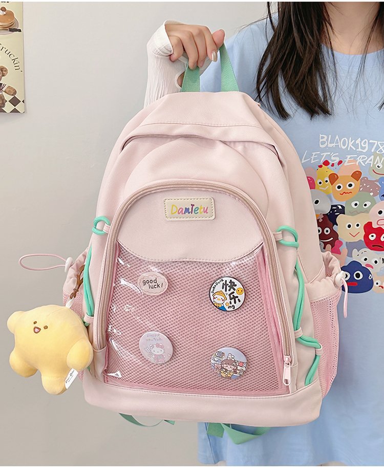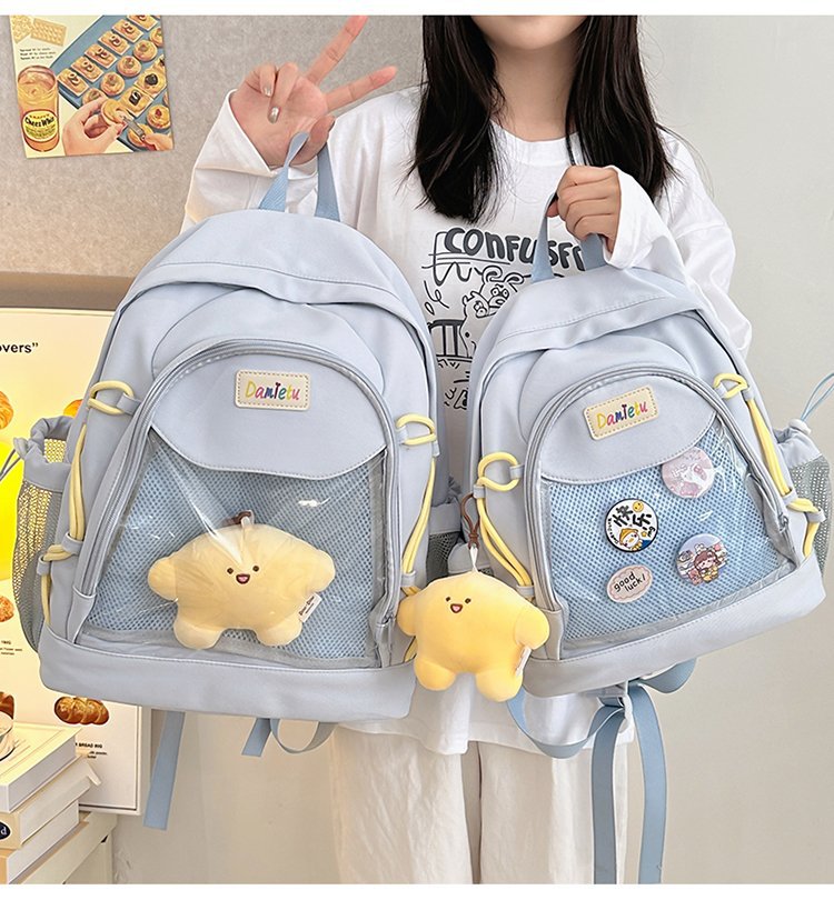 중학교 및 고등학교 고등학생을위한 일본식 귀여운 심플 하이 페이스 대용량 틈새 소녀 올 매치 백팩스토어 가기
