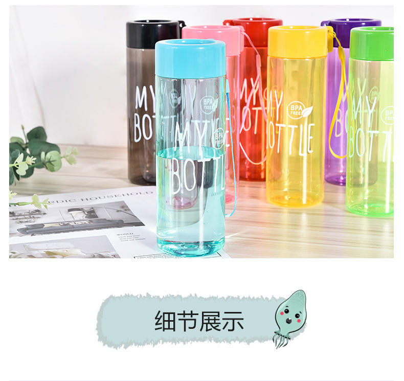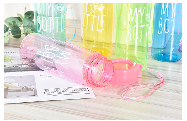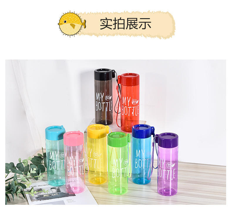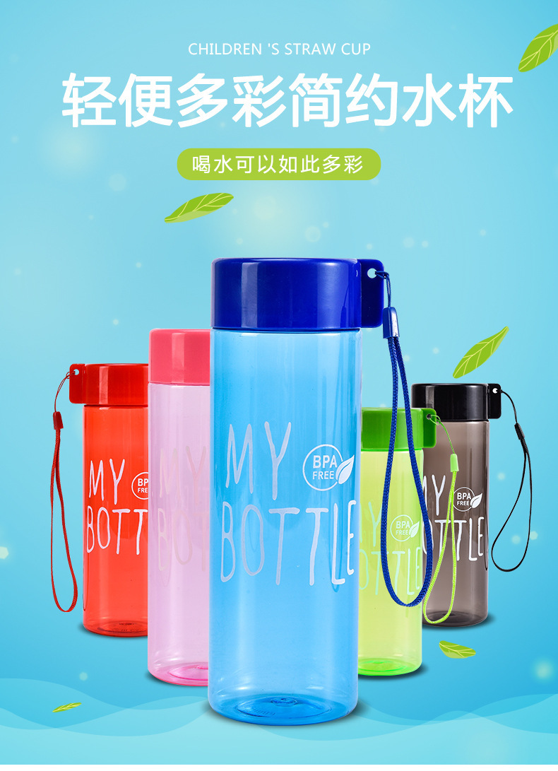 간단한 스트랩 컬러 워터 컵 컵 컵 커버 투명 휴대용 유니버설 플라스틱 컵 선물 컵