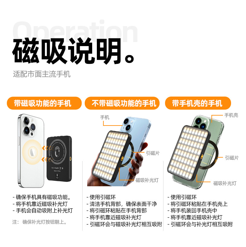 자기 흡입 휴대 전화 채우기 빛 카메라 셀카 사진 빛 RGB 분위기 포켓 라이트 LED 화상 회의 채우기