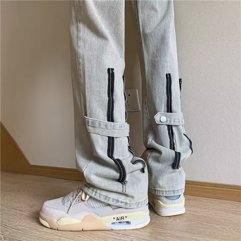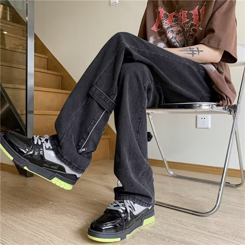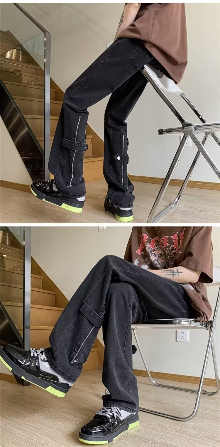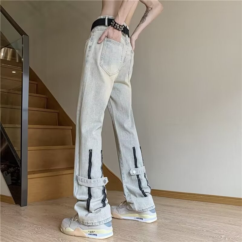 봄과 가을 미국 청바지 남성 스트레이트 루즈 트렌디 브랜드 하이 스트리트 빈티지 세탁 바지 지퍼 하이 스트리트 청바지