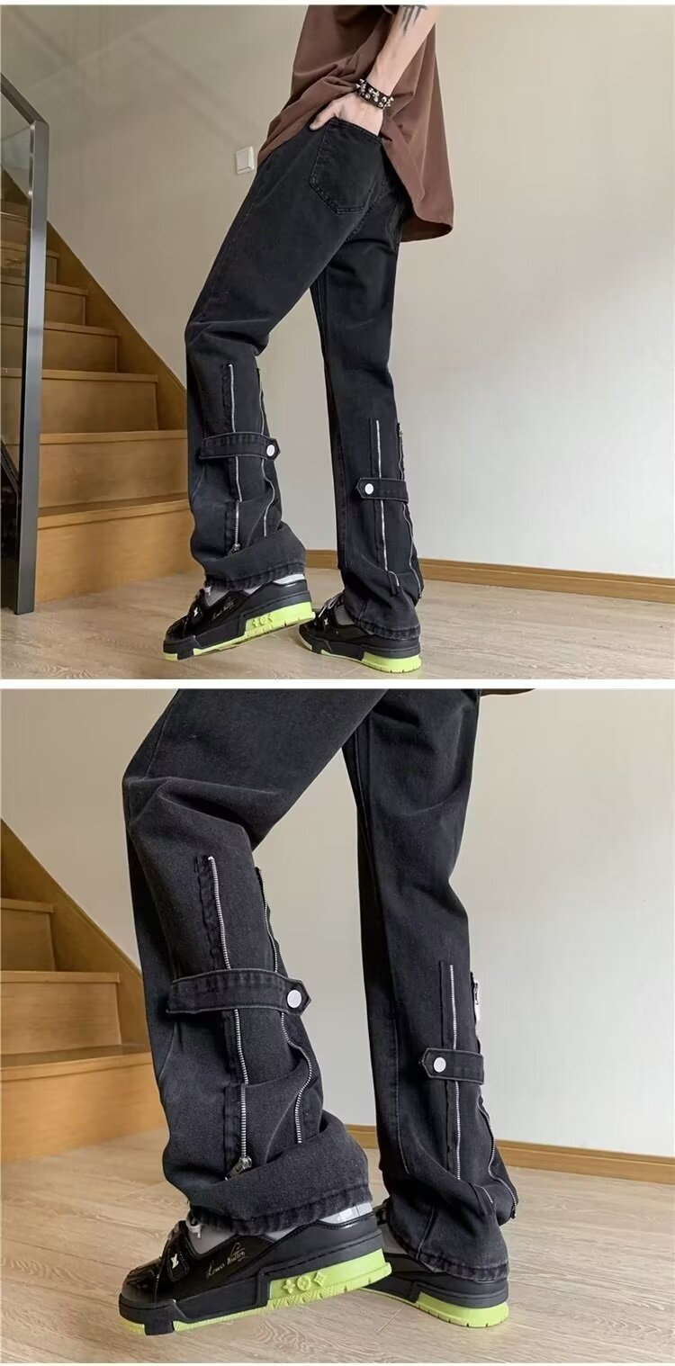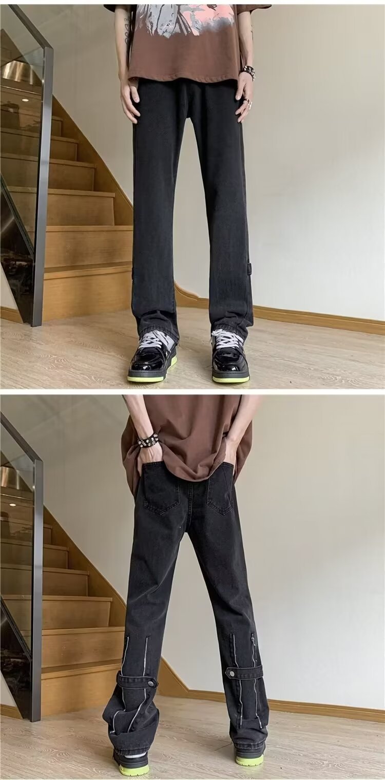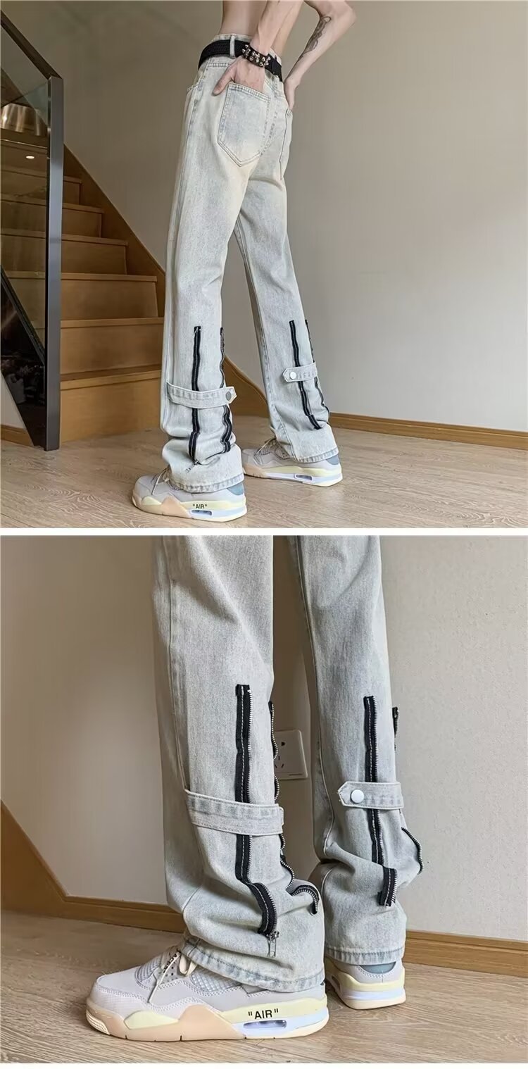 봄과 가을 미국 청바지 남성 스트레이트 루즈 트렌디 브랜드 하이 스트리트 빈티지 세탁 바지 지퍼 하이 스트리트 청바지