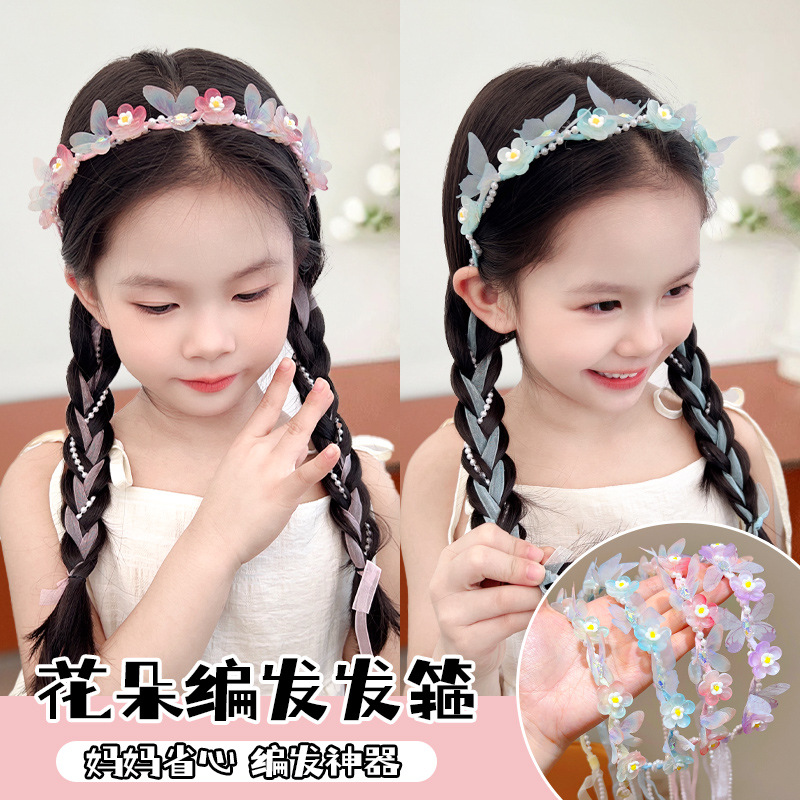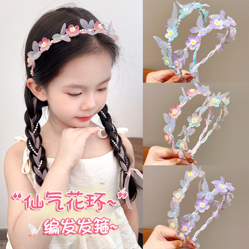 어린이 슈퍼 요정 화환 긴 리본 헤어 밴드 2024 새로운 여자 머리 속보 아티팩트 머리띠 헤어 액세서리스토어 가기