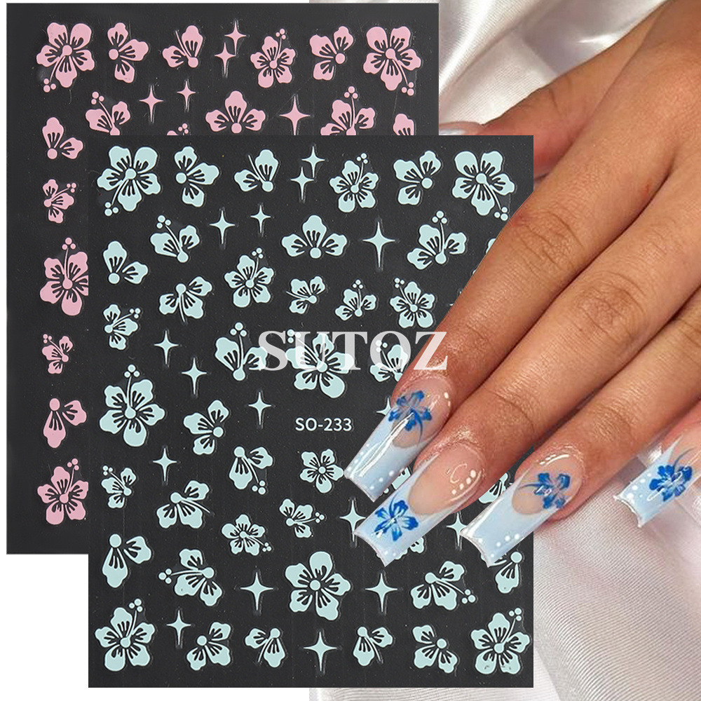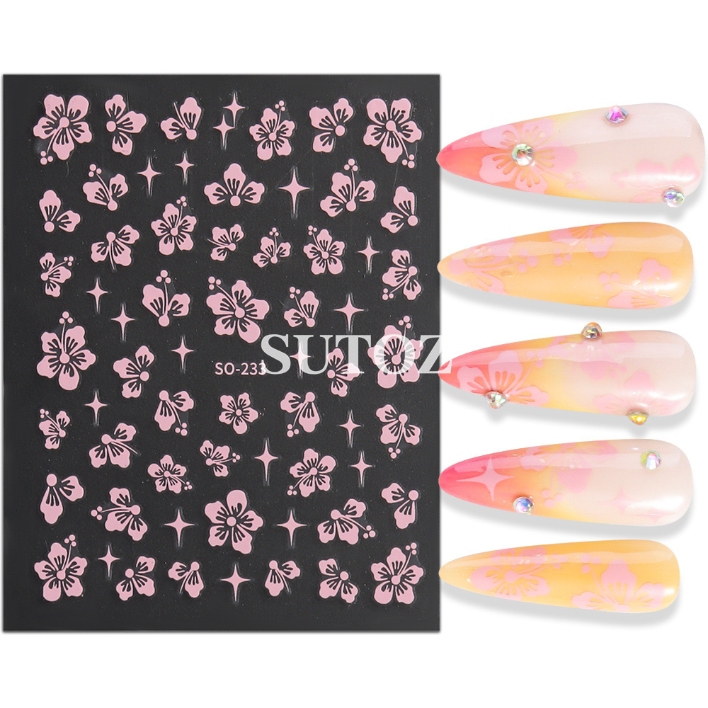 2024 국경 뉴 네일 아트 스티커 여름 작은 신선한 로맨틱 벚꽃 네일 다시 접착 못