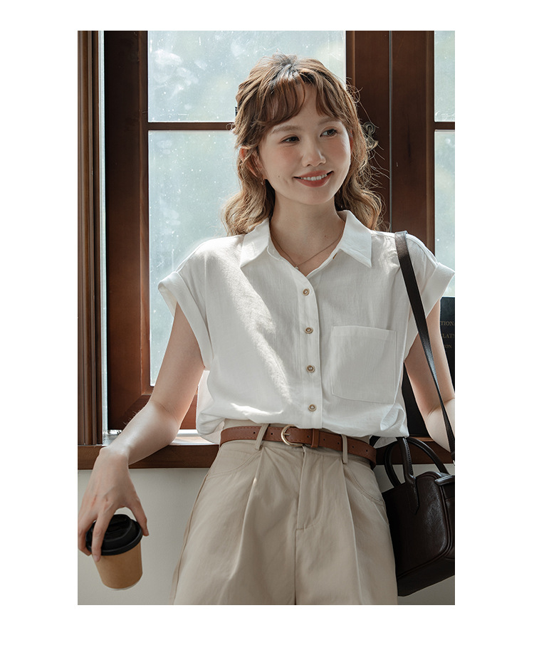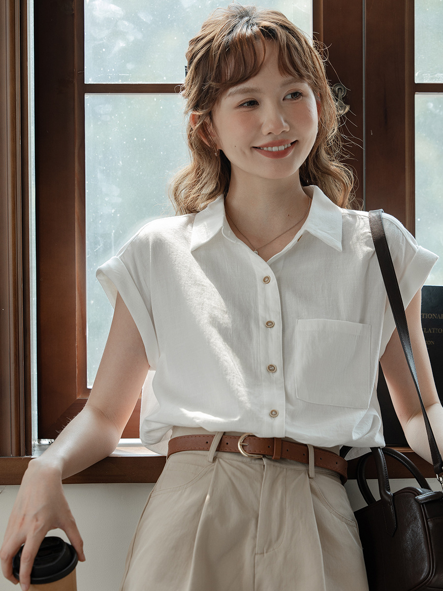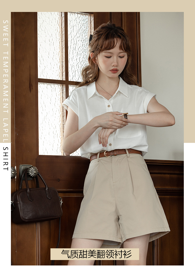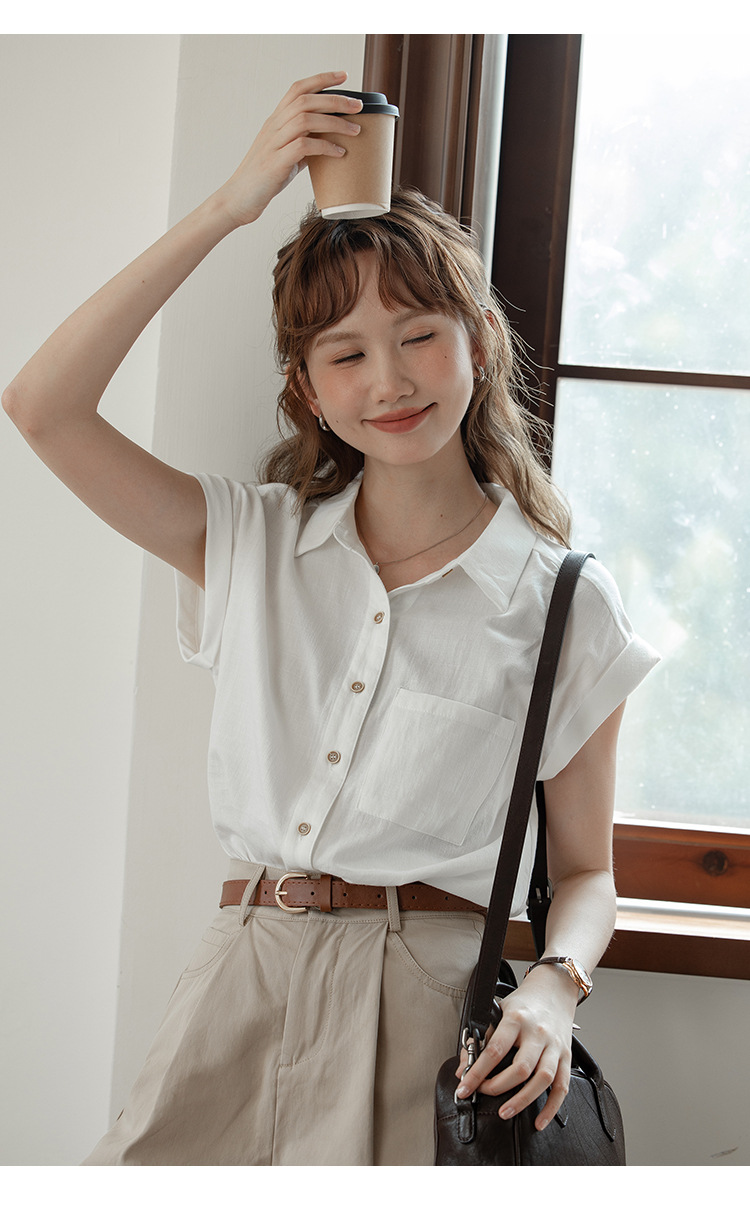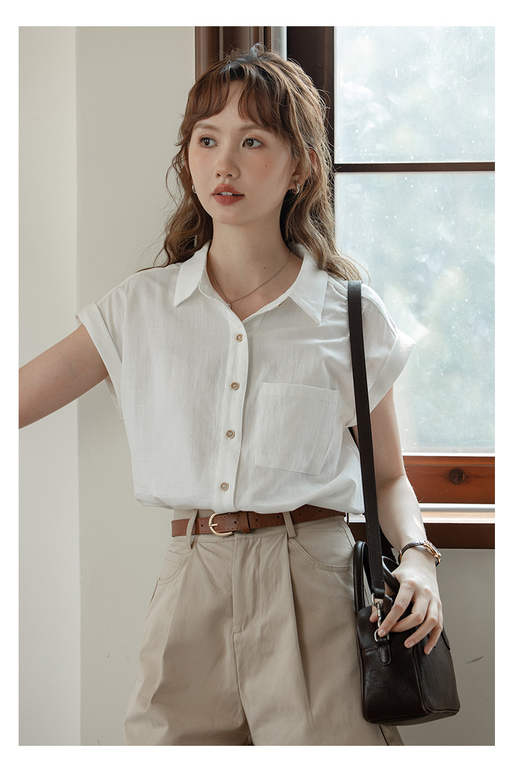 Ins Bull Ear 슬리브 디자인 센스 화이트 셔츠 여성용 짧은 소매 2024 여름 새로운 통기성 휴식 센스 패션 센스 셔츠스토어 가기