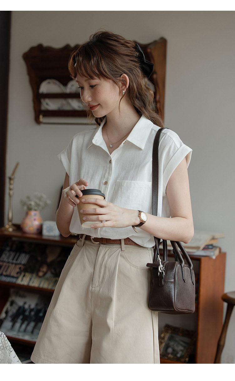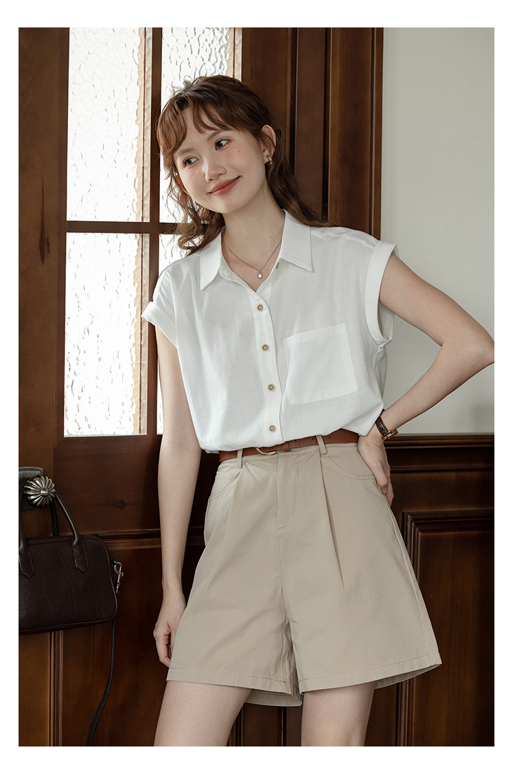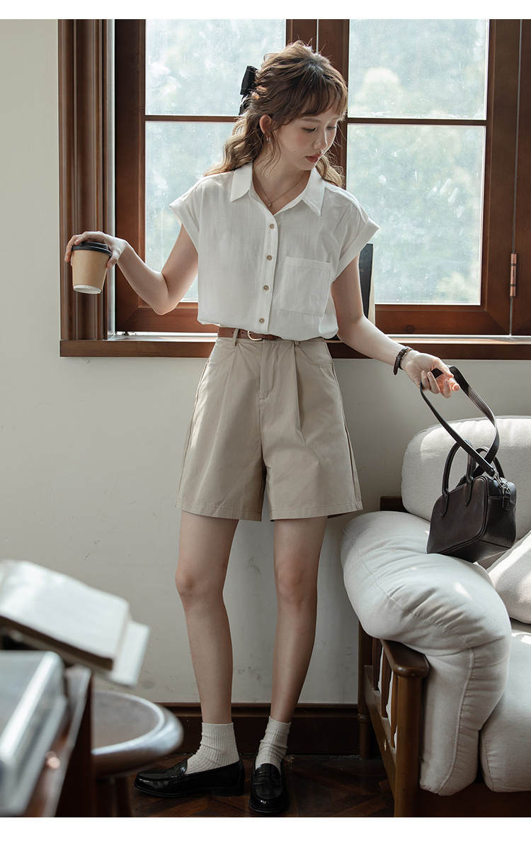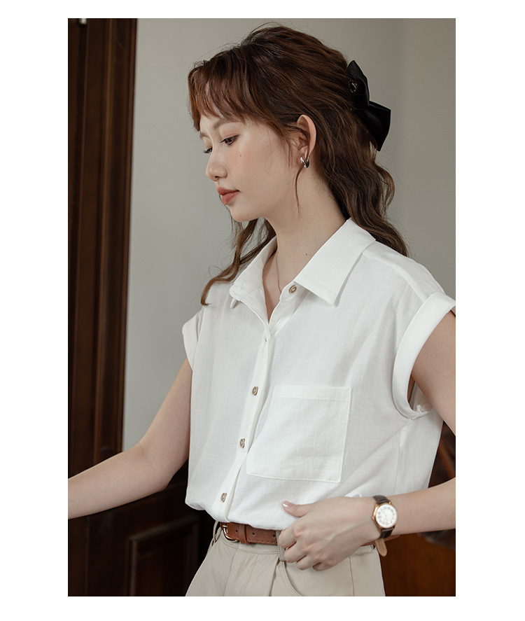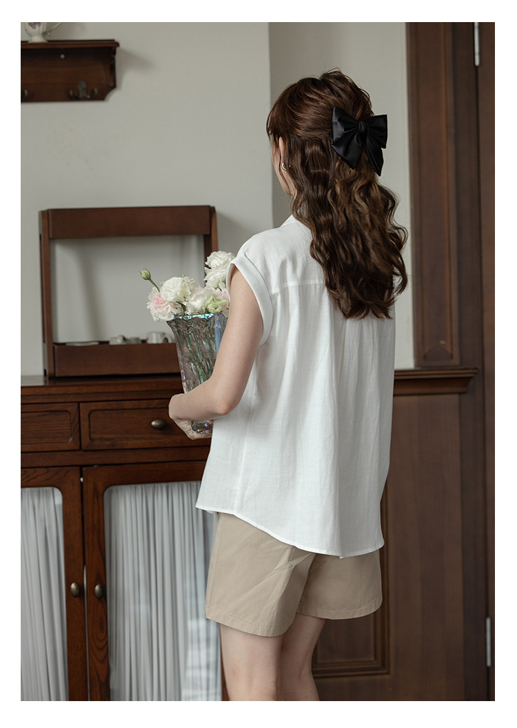 Ins Bull Ear 슬리브 디자인 센스 화이트 셔츠 여성용 짧은 소매 2024 여름 새로운 통기성 휴식 센스 패션 센스 셔츠스토어 가기