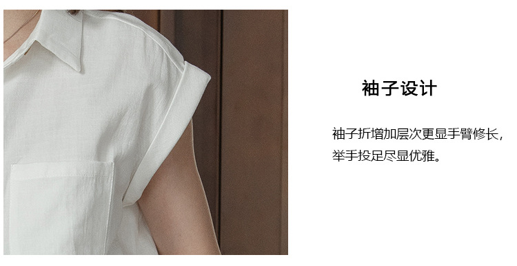 Ins Bull Ear 슬리브 디자인 센스 화이트 셔츠 여성용 짧은 소매 2024 여름 새로운 통기성 휴식 센스 패션 센스 셔츠
