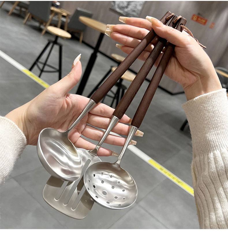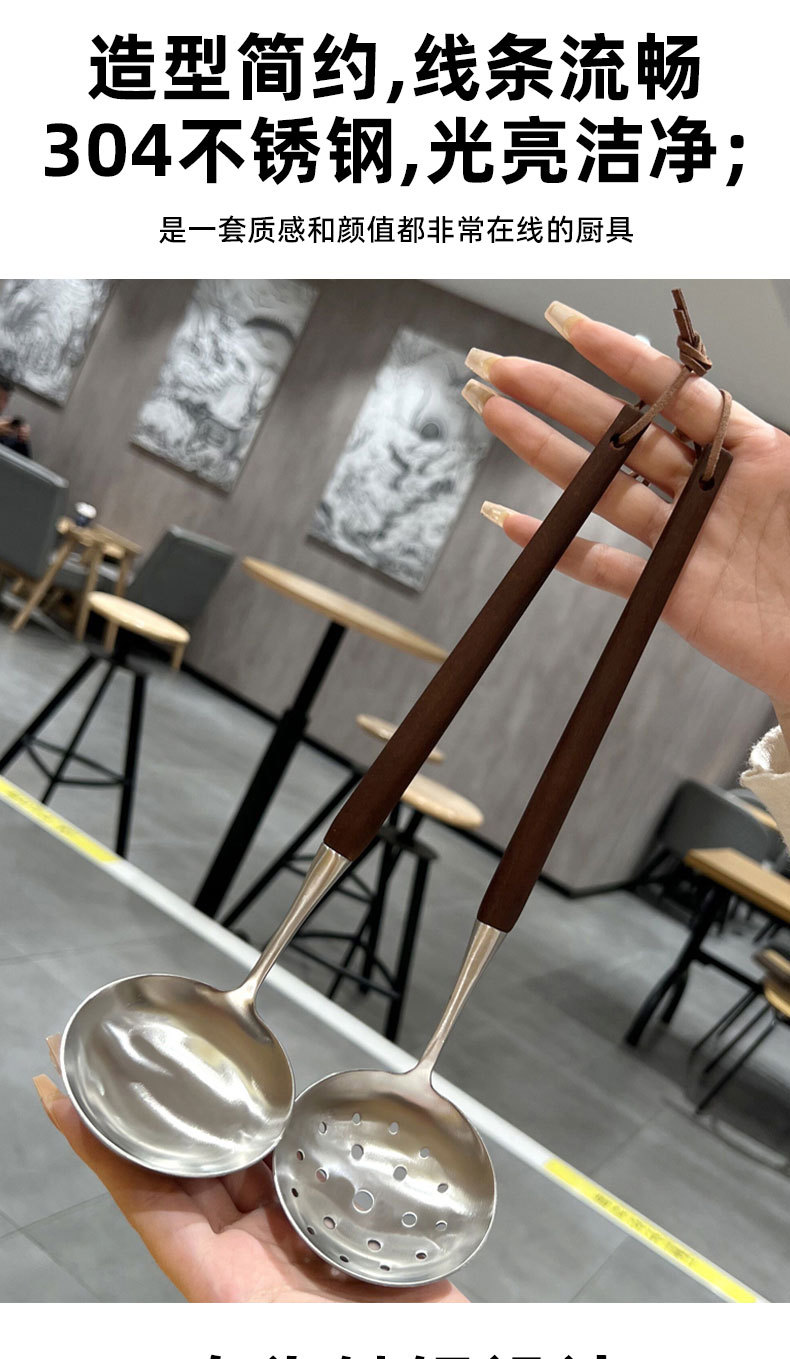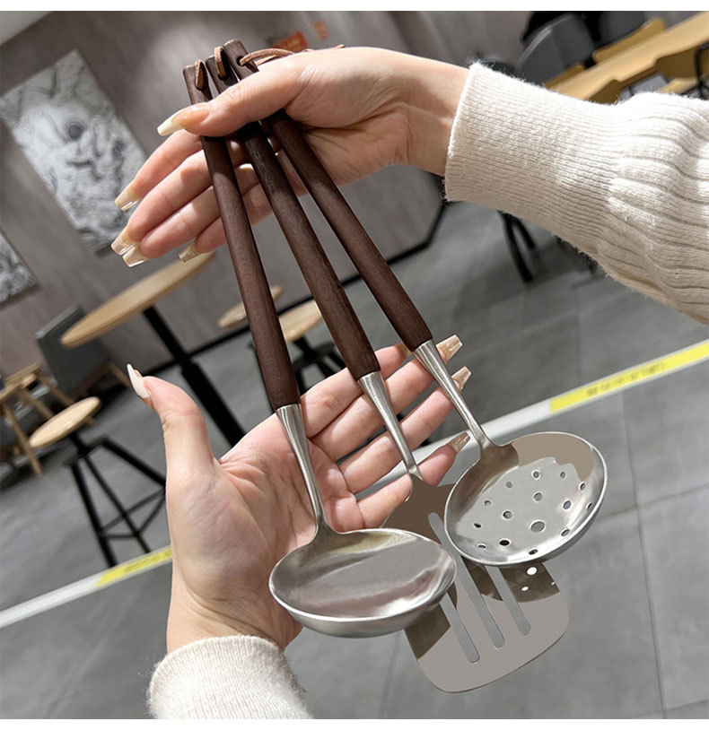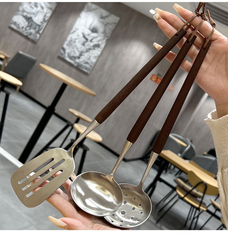 304 스테인레스 스틸 스푼 소쿠리 가정용 호두 주걱 3 종 주방 두꺼운 전골 스푼 주방 세트
