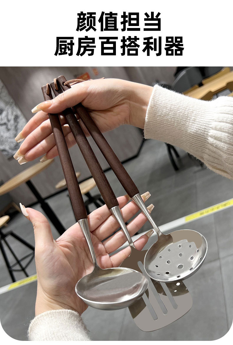 304 스테인레스 스틸 스푼 소쿠리 가정용 호두 주걱 3 종 주방 두꺼운 전골 스푼 주방 세트스토어 가기