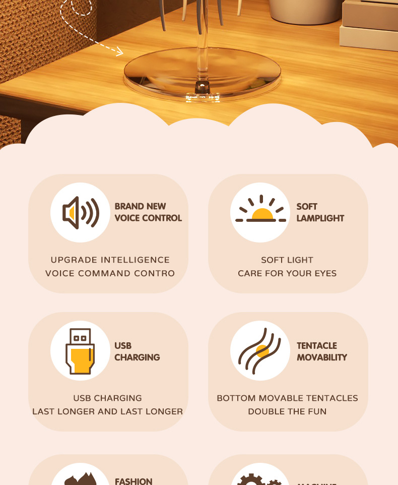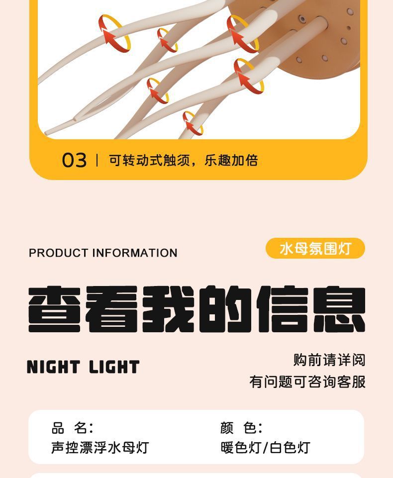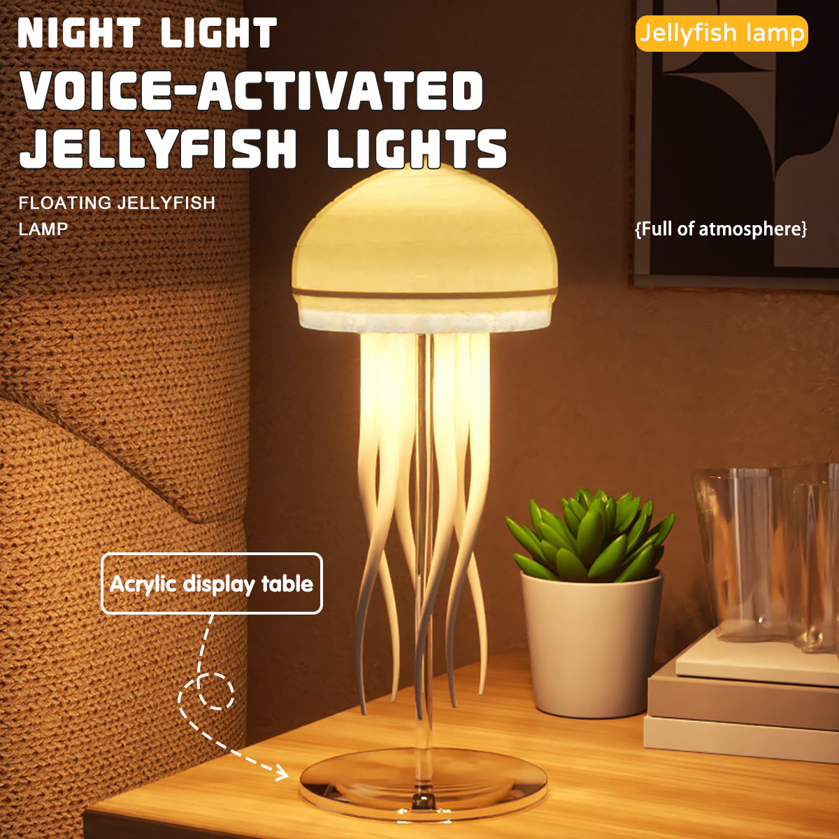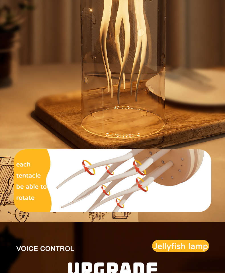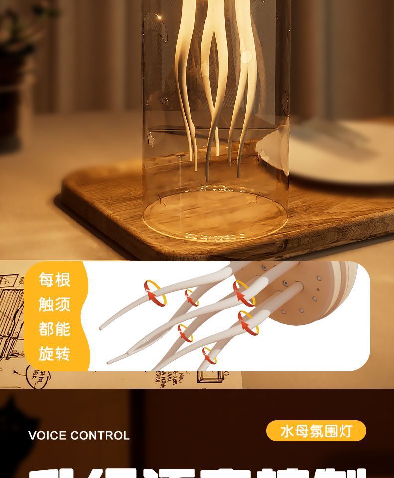 • 크로스보더 영어 인터랙티브 버전 [따뜻한 색상 램프] 해파리 램프 + 아크릴 베이스